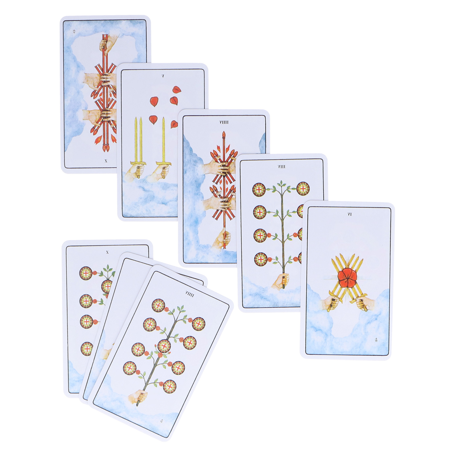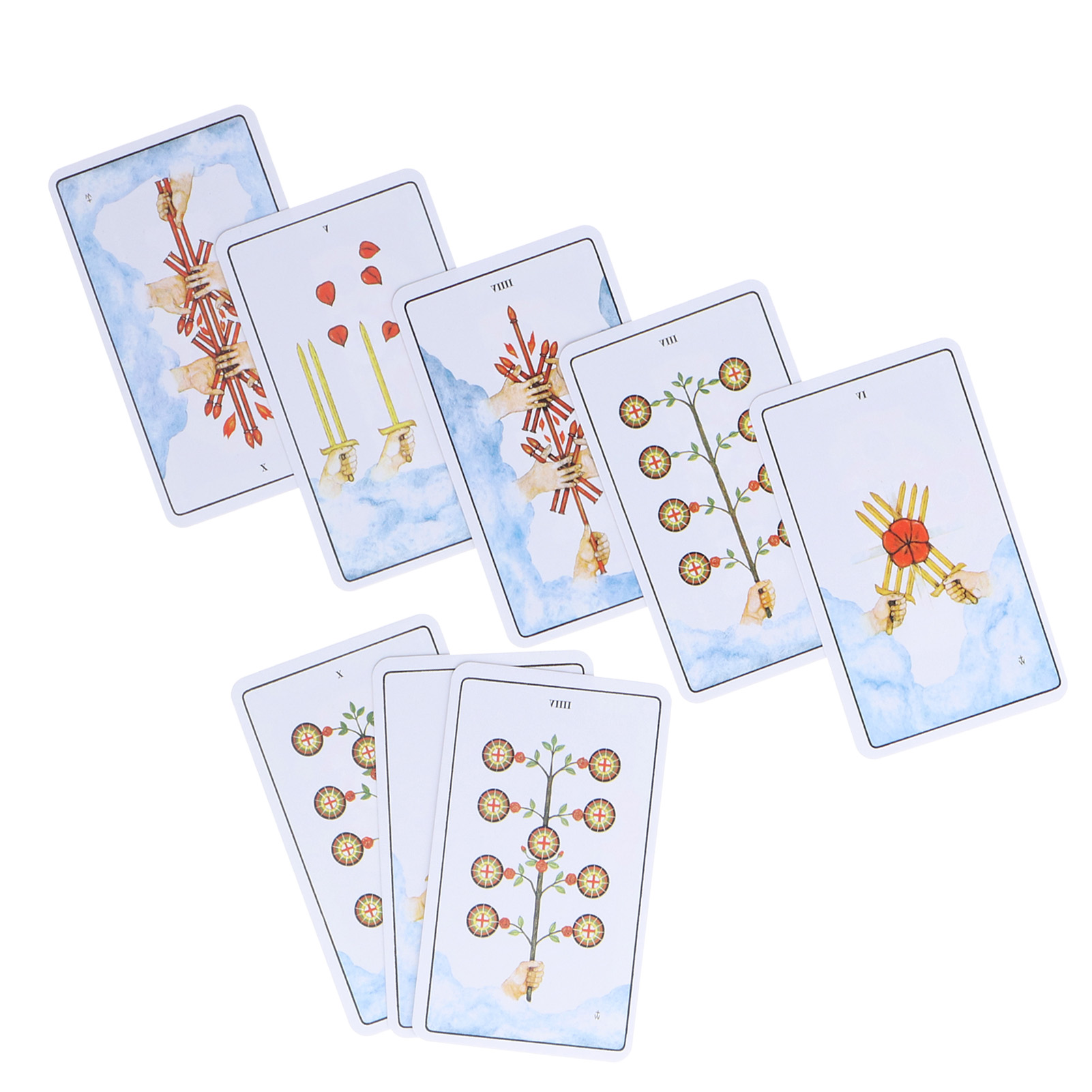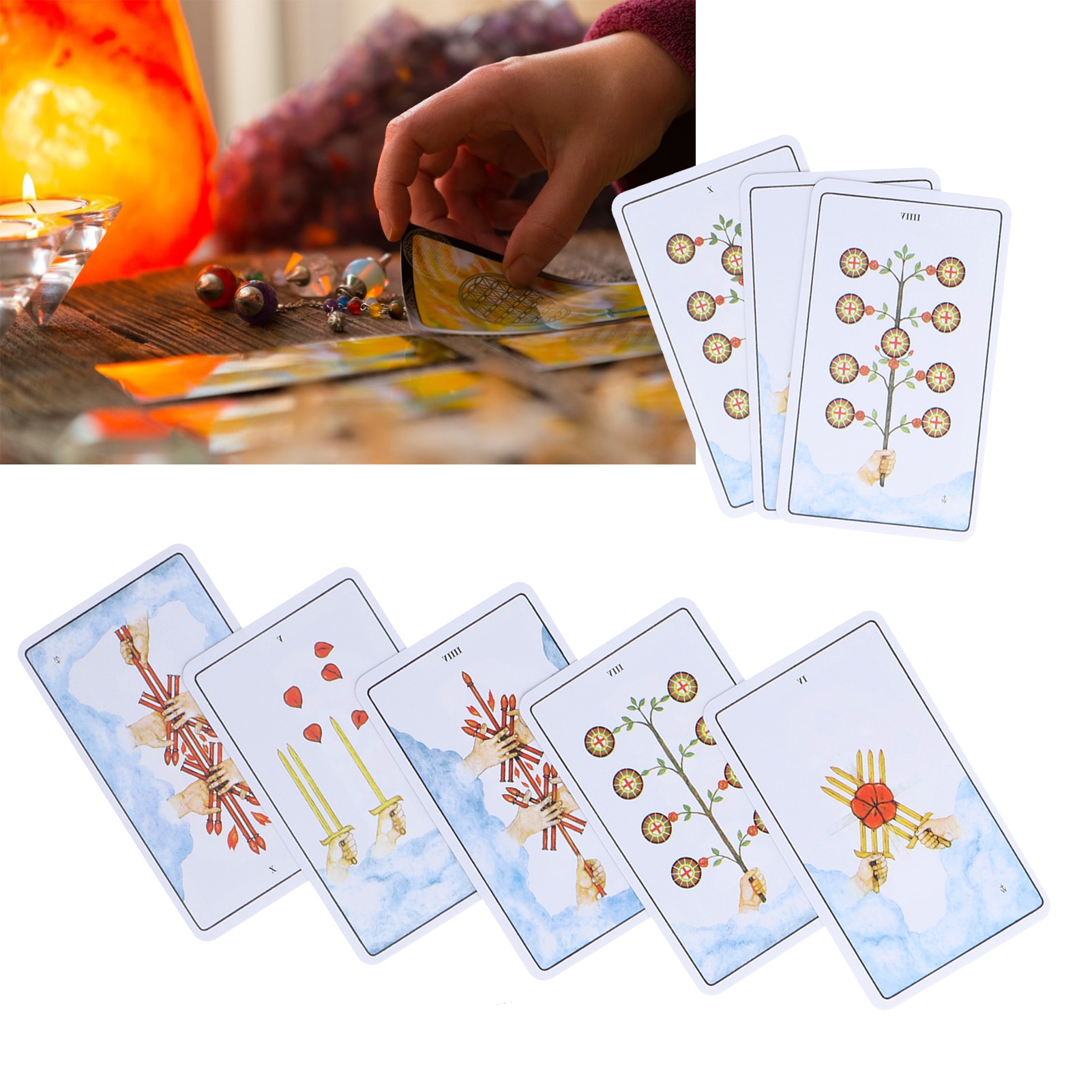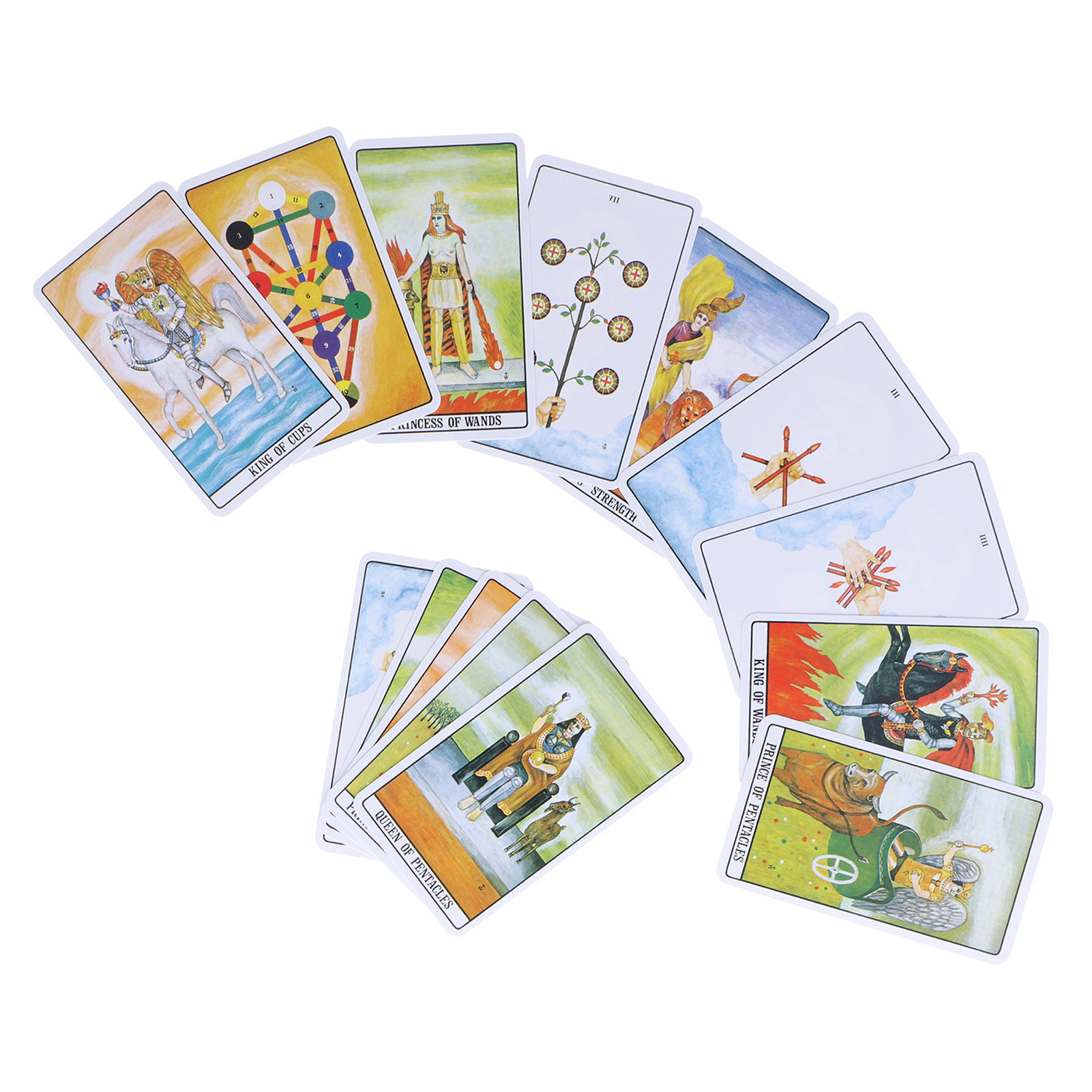 1、These card games can eliminate stress, calm you down for meditation, and help you relax. 2、The game is a perfect blend of classic strategy and skill games to stimulate your thinking and imagination. 3、Can be used in any situation. On the bus, at your desk, in line at the supermarket or just before going to bed at night. 4、You can scan the QR code in the box to see the explanation. The rules of the tarot cards are clearly and succinct. 5、Since the 1700s, tarot card reading has been used in divination, where each reader is able to explore and develop their own methods and interpretations.