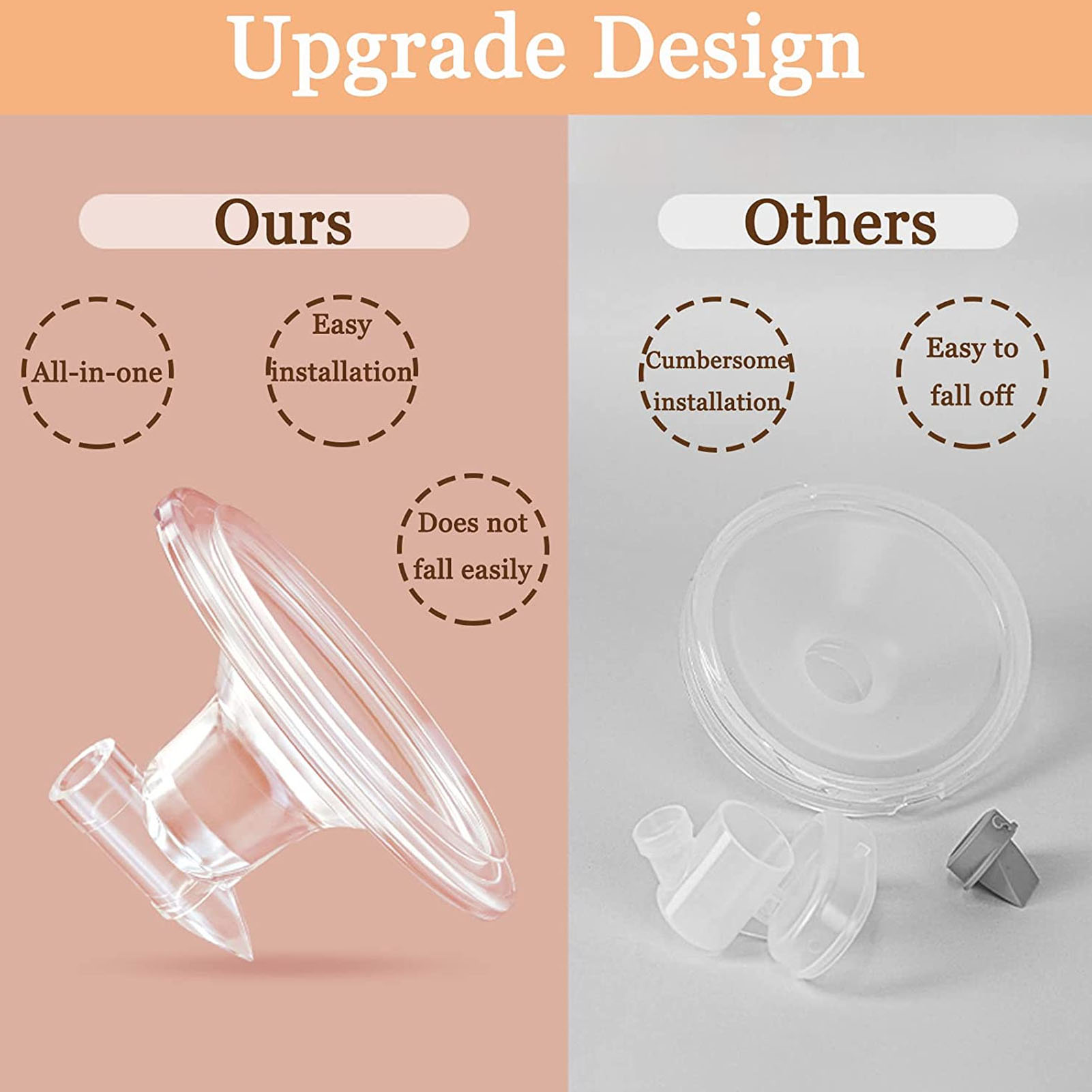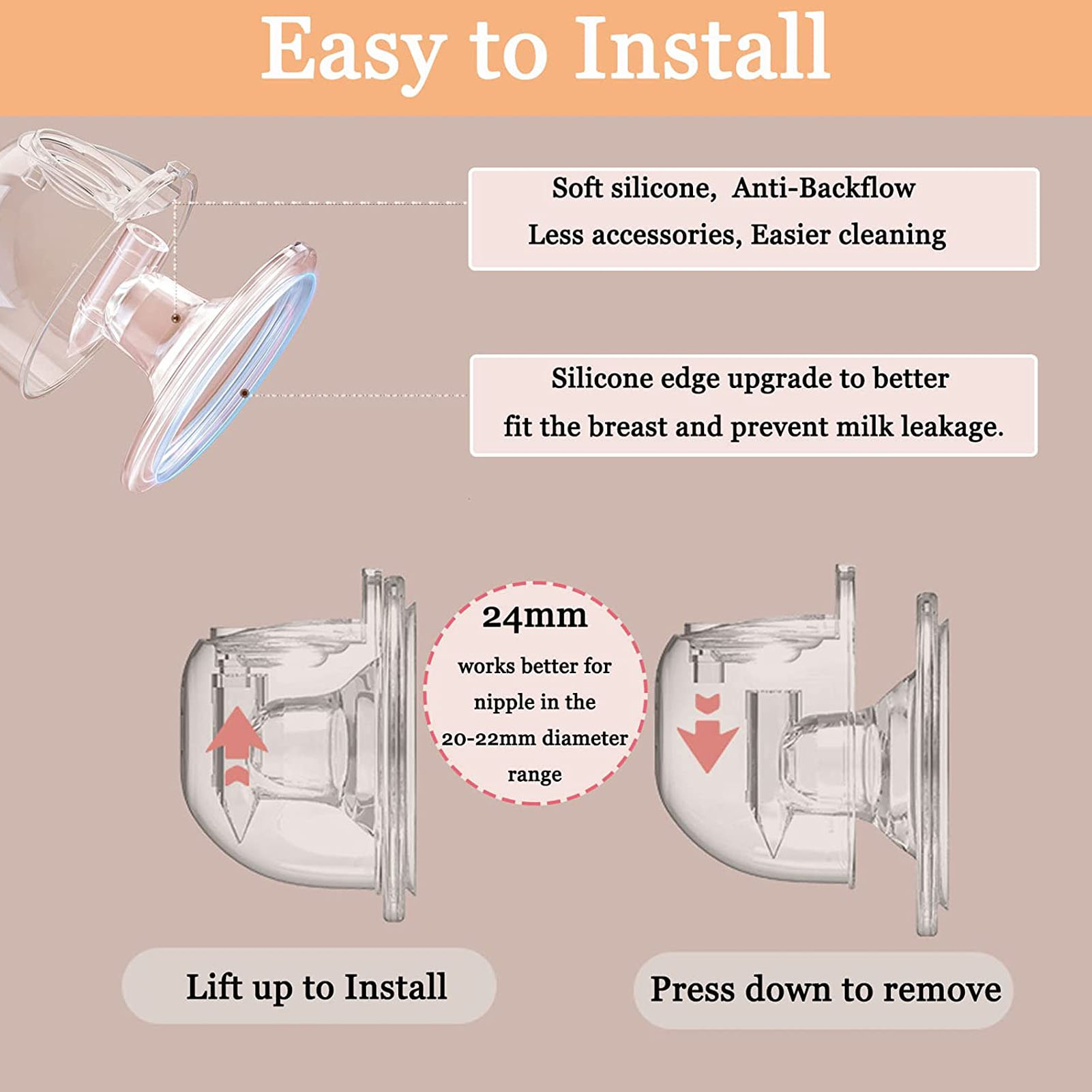1、SAFETY AND COMPATIBILITY: Hands free milk collection cup is made of food grade pp and silicone material, and do not contain other harmful substances, compatible with most milk bottles. 2、HAND FREE: Portable design, can be placed directly on the bra, free your hands, no need to always hold with your hands, ultra light design to prevent milk leakage. 3、INSTALLATION FREE: Milk collection cup can help you improve your breastfeeding efficiency. All in one design, installation free and can be used with a variety of breast pumps and silicone tubes. 4、EASY TO CLEAN: Breast milk collector cup are easy to clean and can be hand washed with warm water and soap, preferably air dried before use. 5、WARM NOTE: Ideal choice for postpartum mother. It is recommended that parts be replaced every 1 to 2 months. Deformed parts can cause suction failure or fluid leakage.