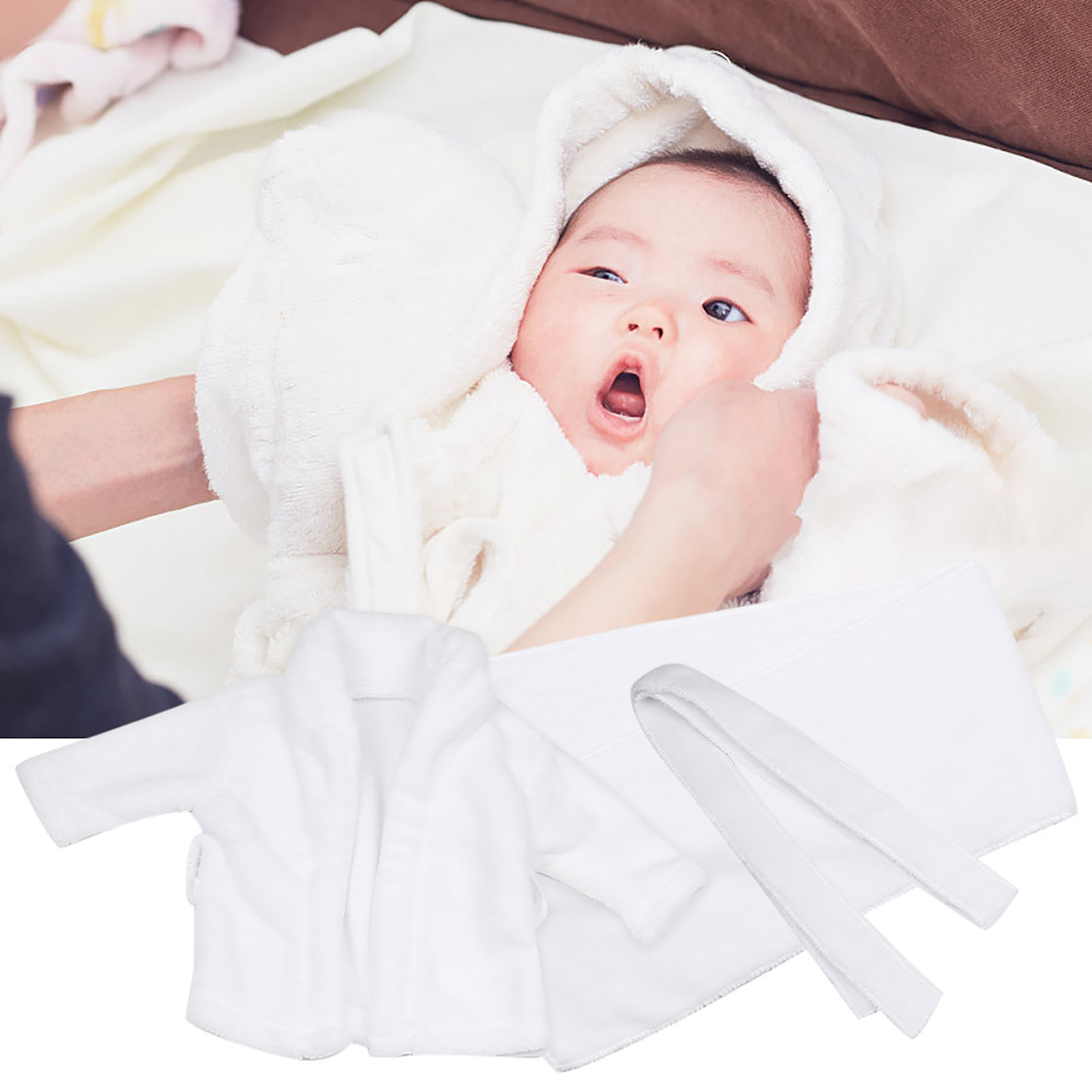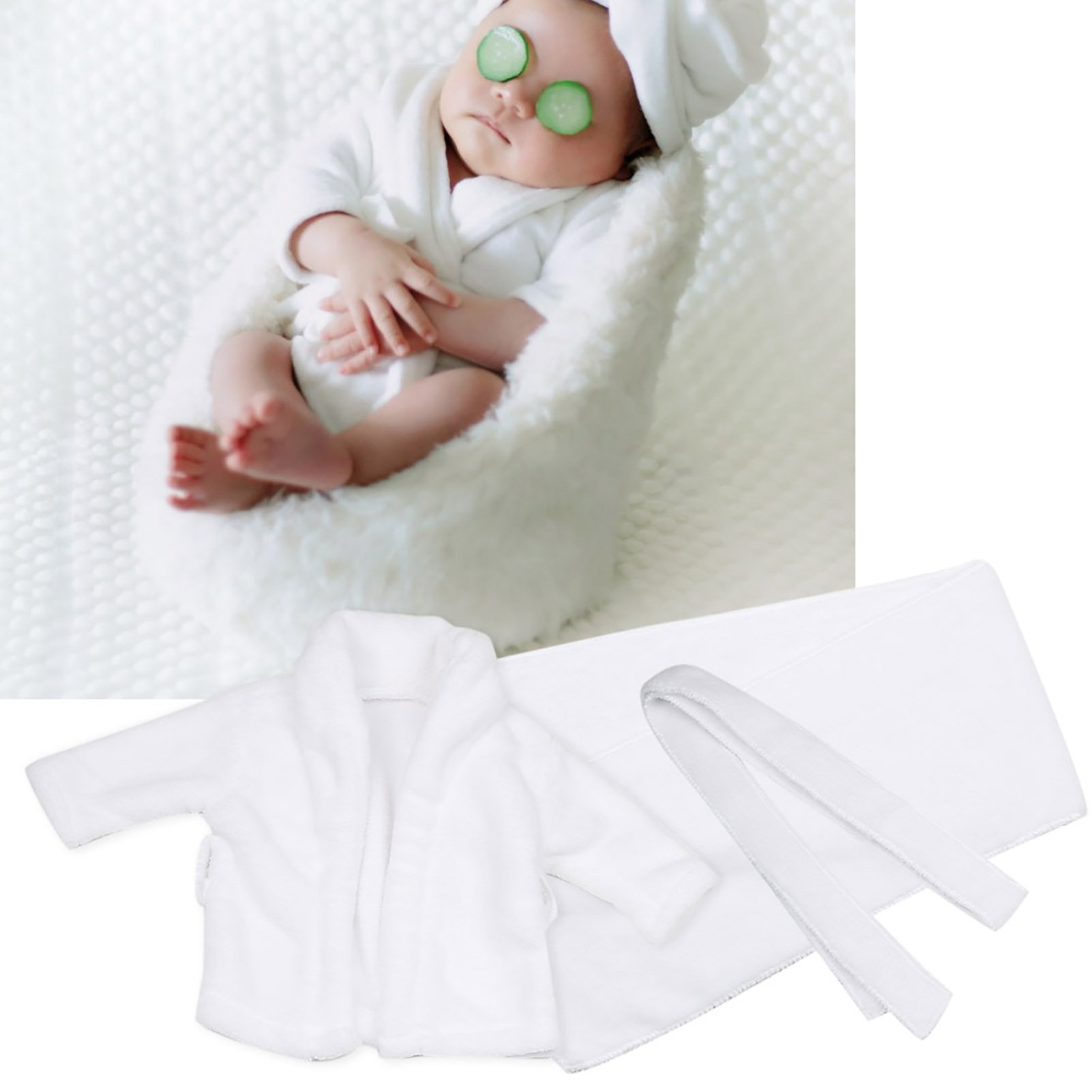 1、Made of high quality cotton material, soft and comfortable, skin friendly to baby 2、It will make your baby become more fashionable, lovely and attractive 3、The cotton bathrobe can keep your baby warm even when outdoor photography 4、Perfect for baby photography props, newborn party costume, baby shower gift and so on. 5、This outfit set include a bathrobe and a towel, a nice gift for baby