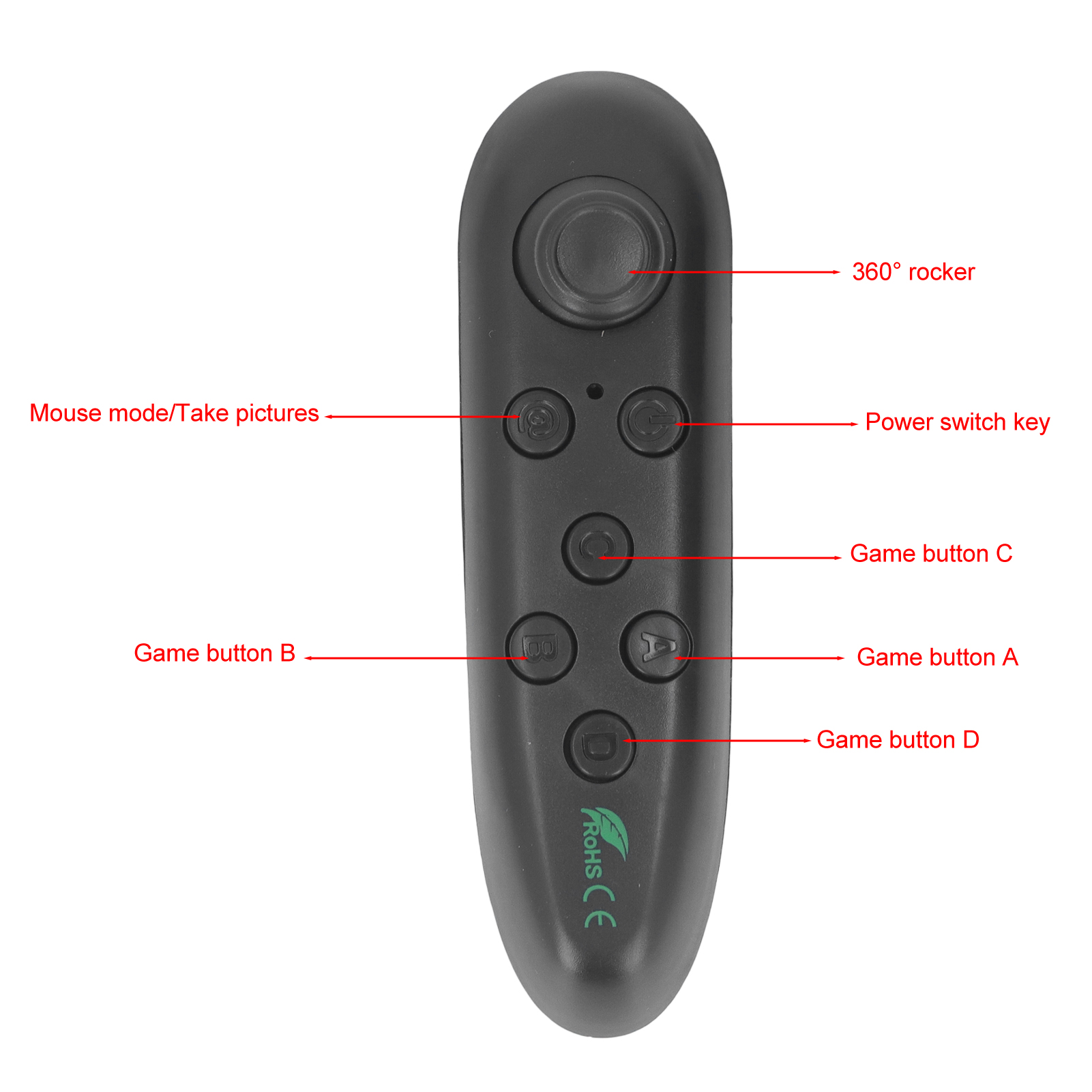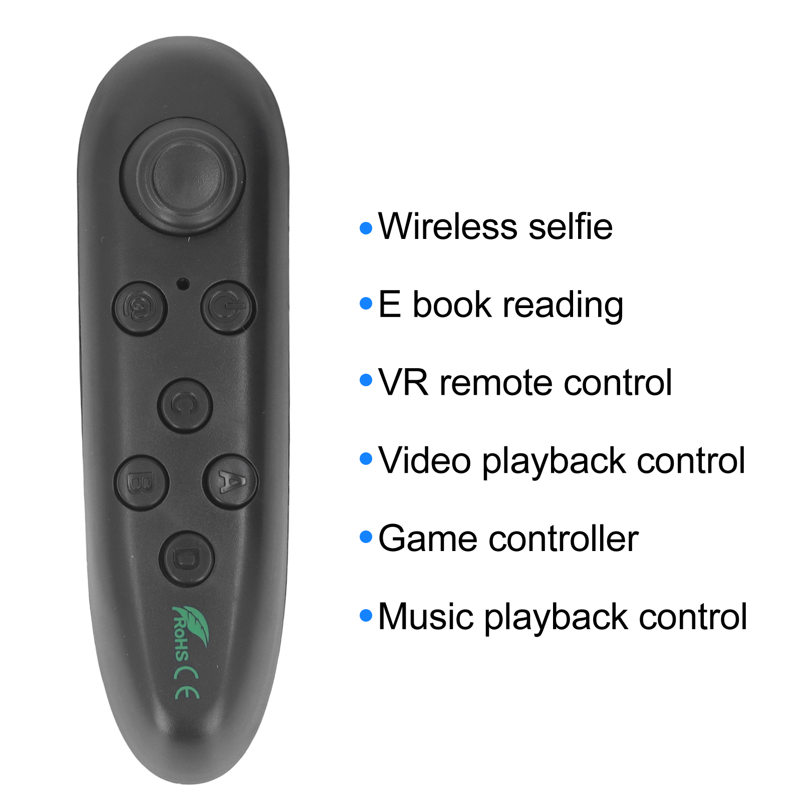 1、2‑10m Distance: VR Joystick remote controller compatible for Android and for PC systems, which bring you 2 to 10m long distance control. 2、For IOS: Wireless VR gamepad works for IOS system, but has limited functionality, including camera shutter release, music and video playback. 3、High Sensitivity: VR Remote controller adopted ergonomically design, with intuitive and sensitive control, which is convenient for you to use. 4、Easy Connection: Wireless VR gamepad with BT connection, provide simple pairing and game setting, which is suitable for many games. 5、Multifunction: Compatible with smart phones, computers and TV boxes, remote controller can be used to control your phone to take pictures.