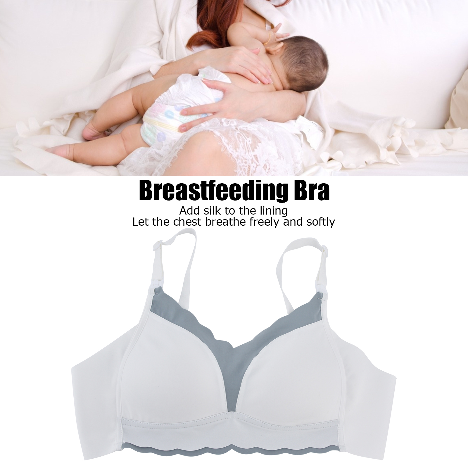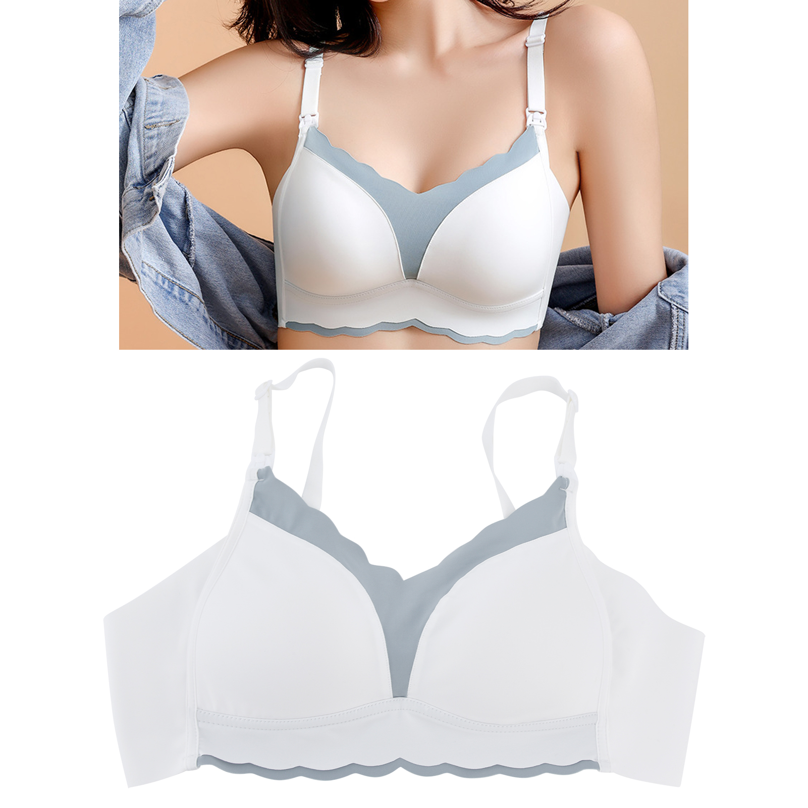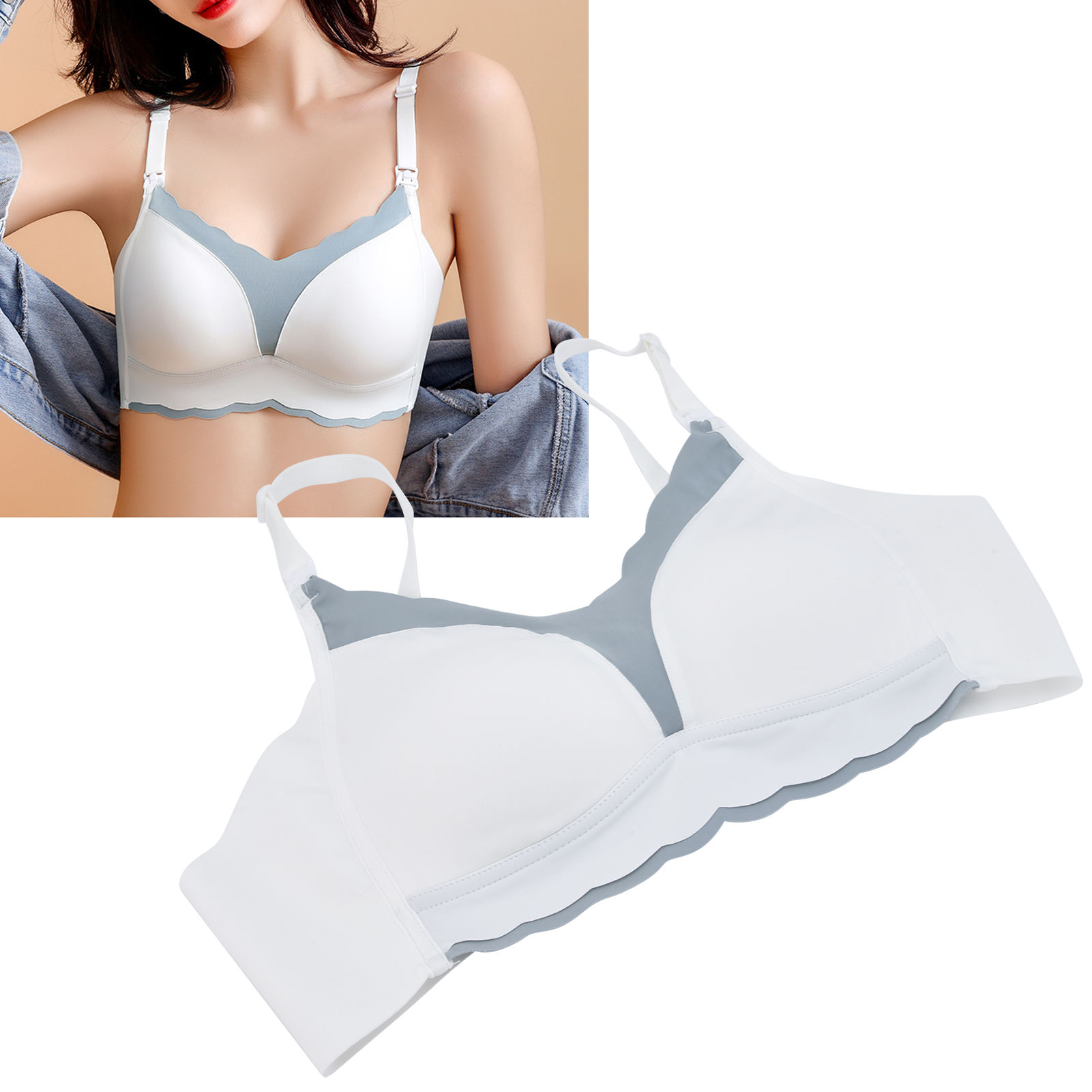 Wireless Nursing Bra Seamless Breastfeeding Light Maternity Bra with Extenders ClipsWhite 42/95BCD