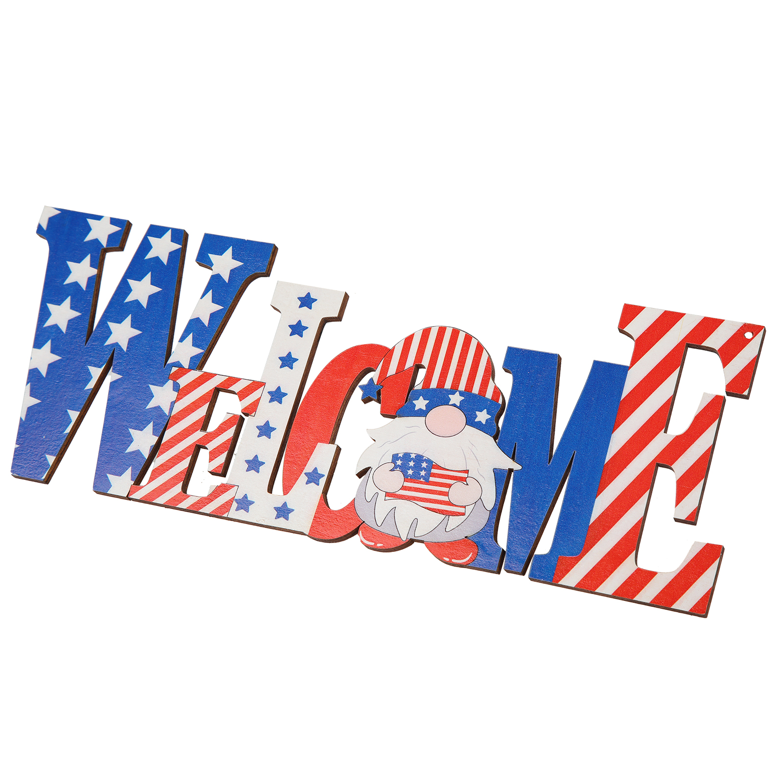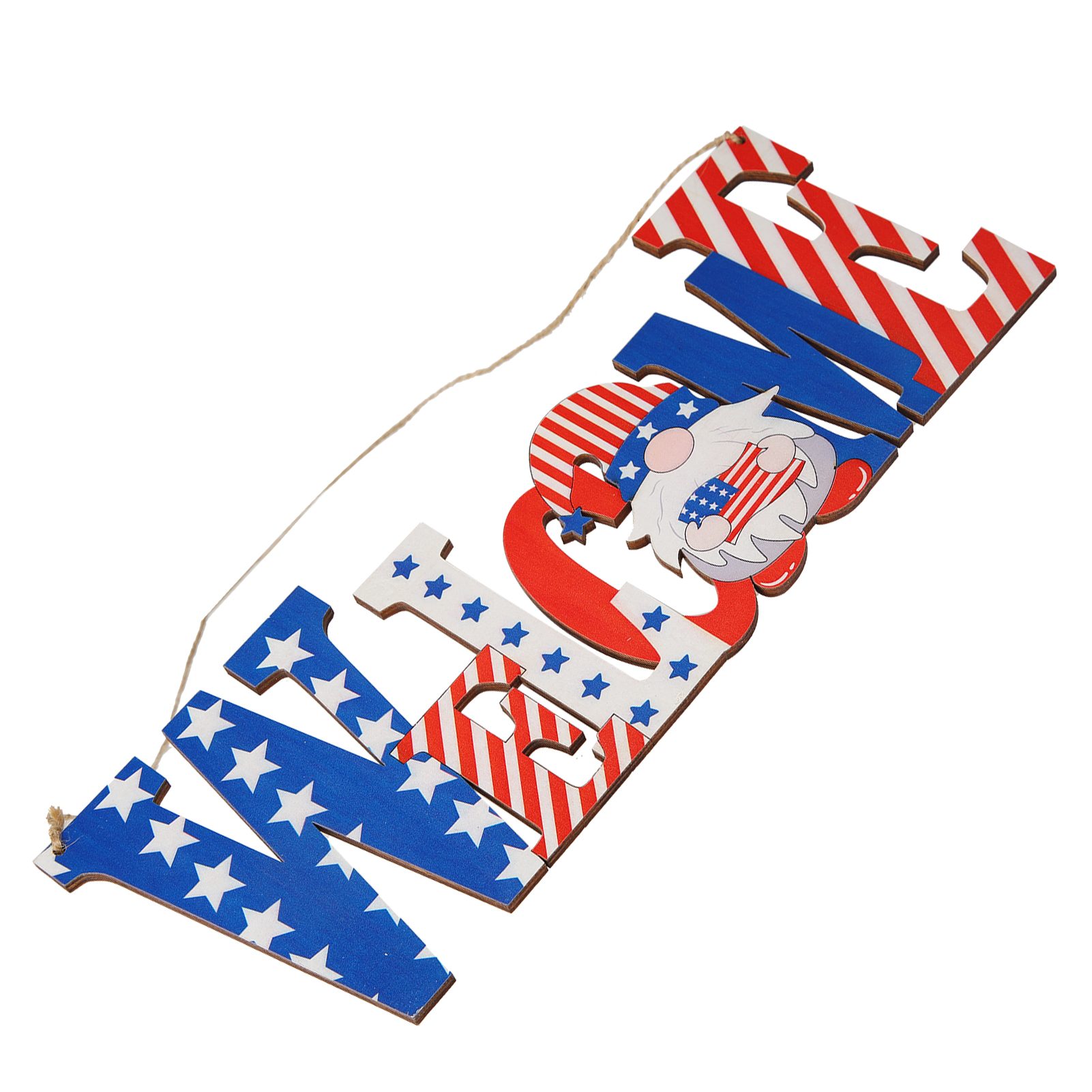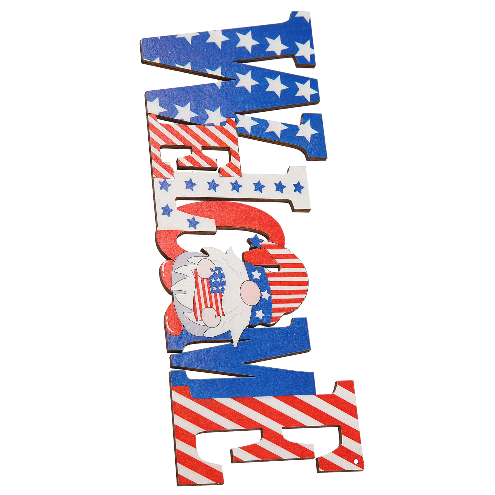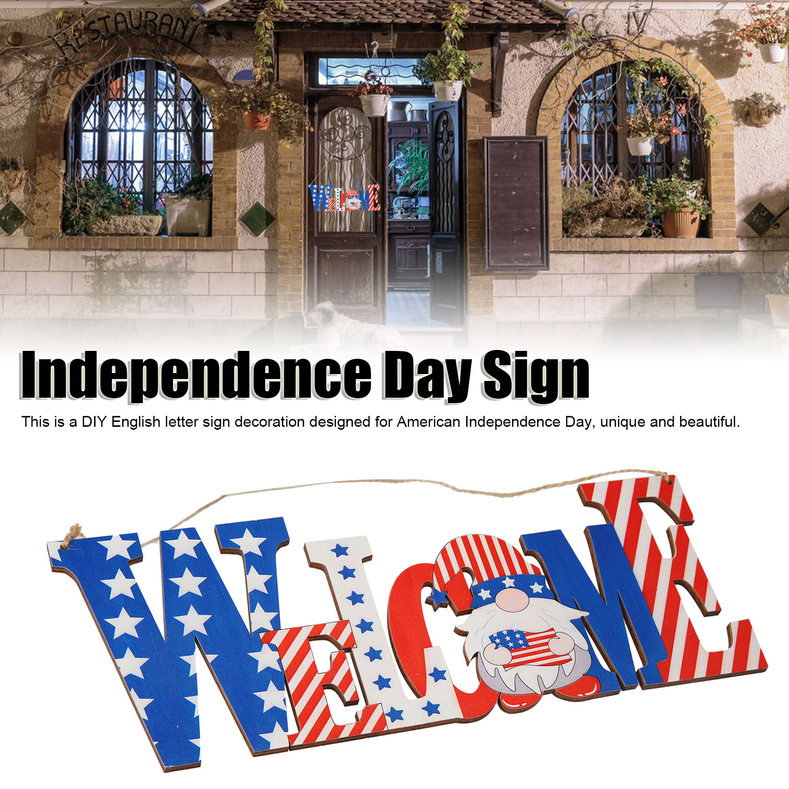 1、This is a DIY English letter sign decoration designed for American Independence Day, unique and beautiful. 2、Cartoon pattern design, bright color, unique color matching, overall looks cute and exquisite, can be perfect decoration. 3、This DIY welcome sign with English letters is easy to carry and easy to operate. Each sign is equipped with a strap, which can be removed or hung at any time. 4、Suitable for bedroom, living room, office, dining room and other places, can also be easily hung on the door or wall. 5、Made of high quality wood material, safe and eco‑friendly, stable structure, firm and sturdy, durable for use.