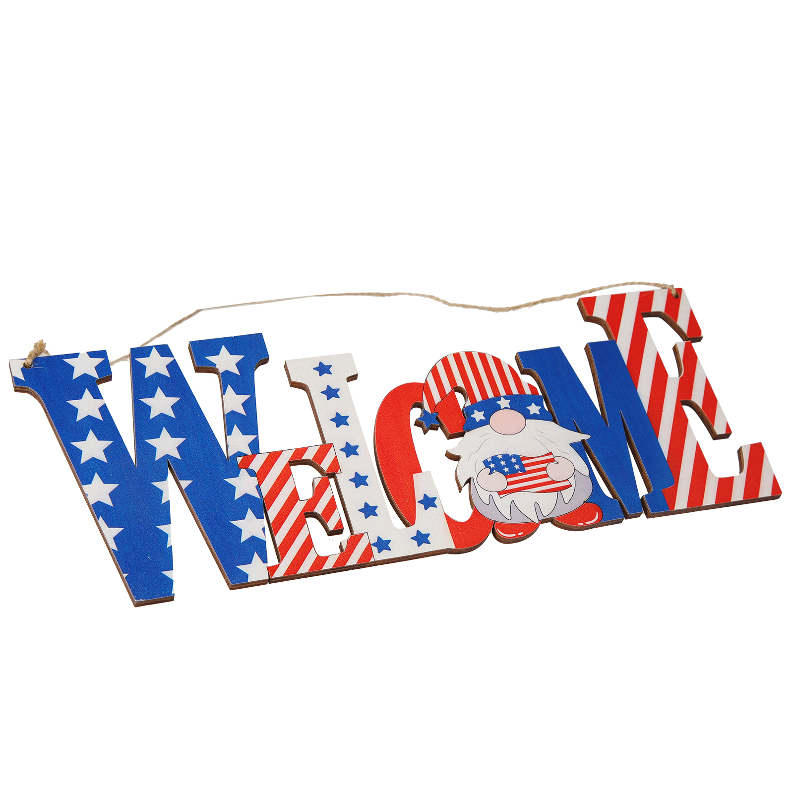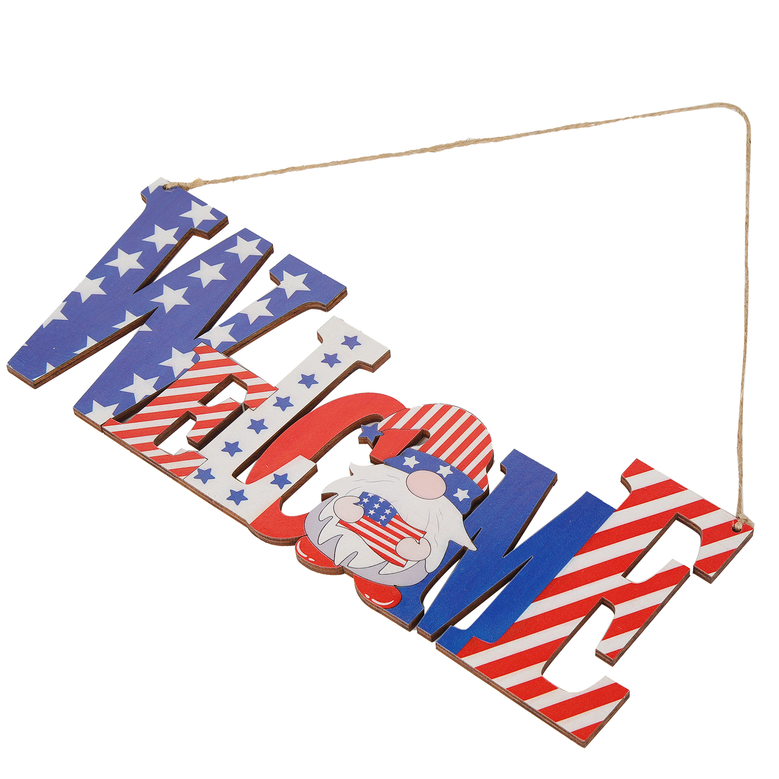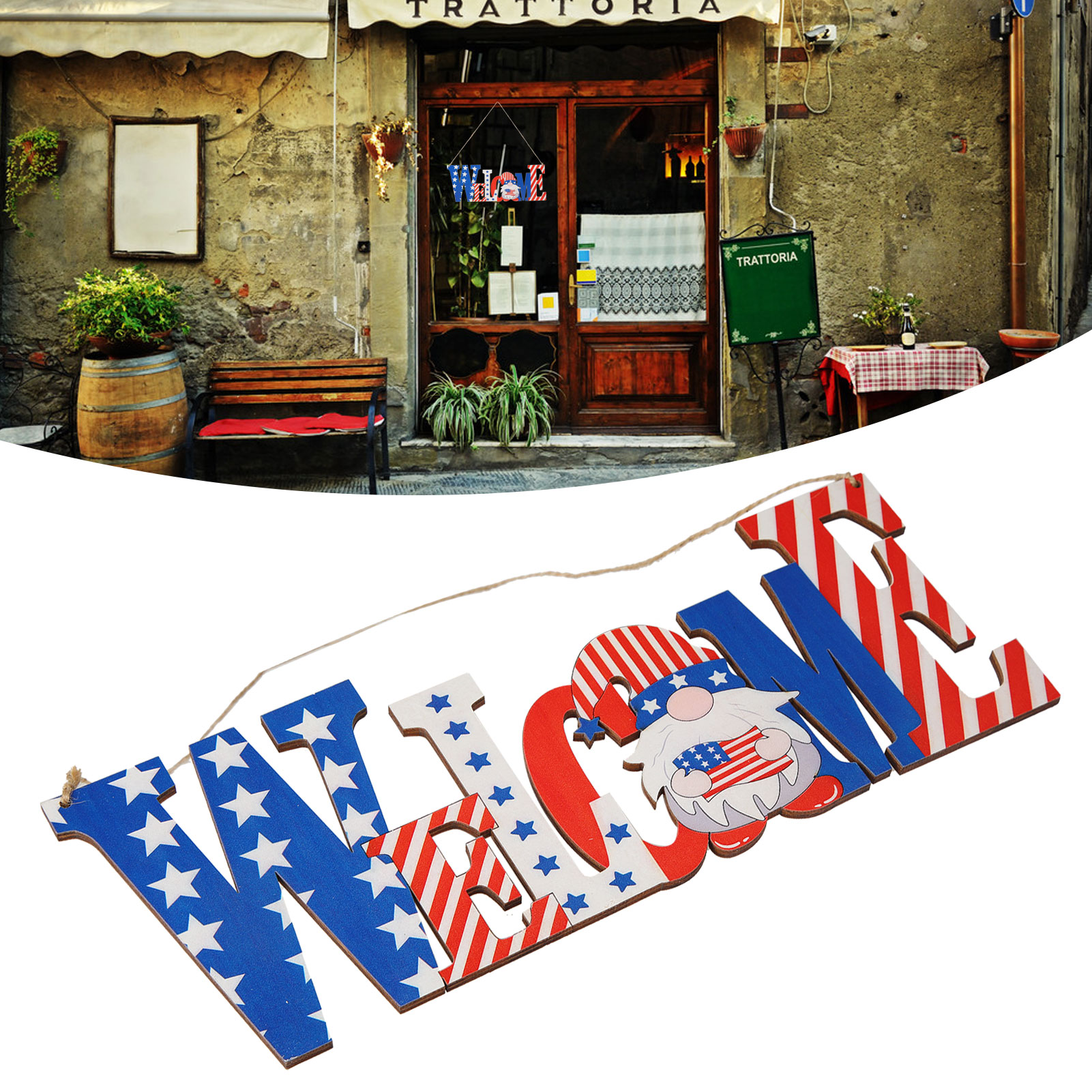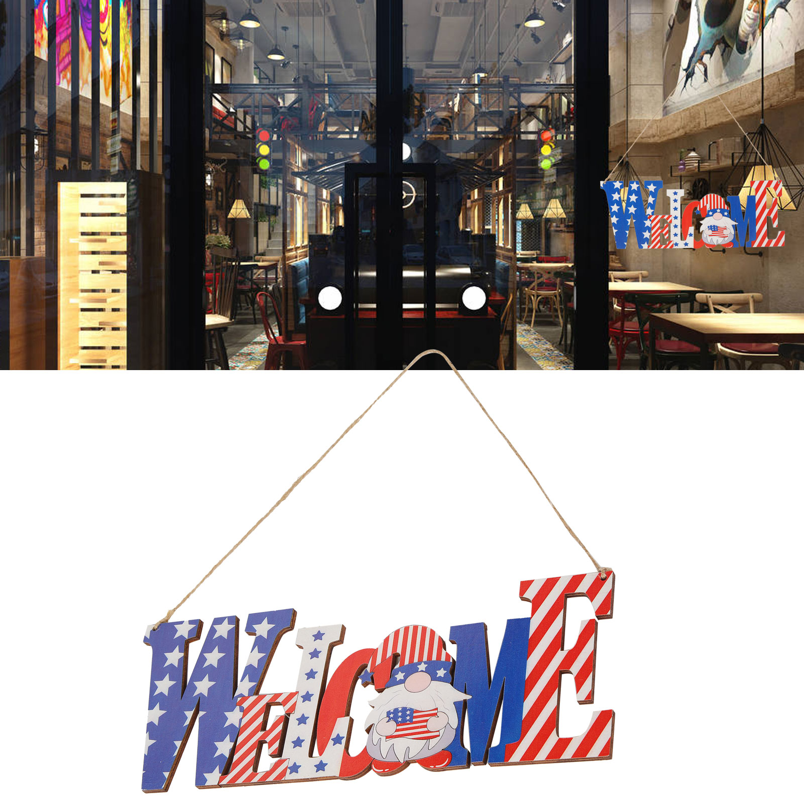 1、This is a DIY English letter sign decoration designed for American Independence Day, unique and beautiful. 2、Cartoon pattern design, bright color, unique color matching, overall looks cute and exquisite, can be perfect decoration. 3、This DIY welcome sign with English letters is easy to carry and easy to operate. Each sign is equipped with a strap, which can be removed or hung at any time. 4、Suitable for bedroom, living room, office, dining room and other places, can also be easily hung on the door or wall. 5、Made of high quality wood material, safe and eco‑friendly, stable structure, firm and sturdy, durable for use.