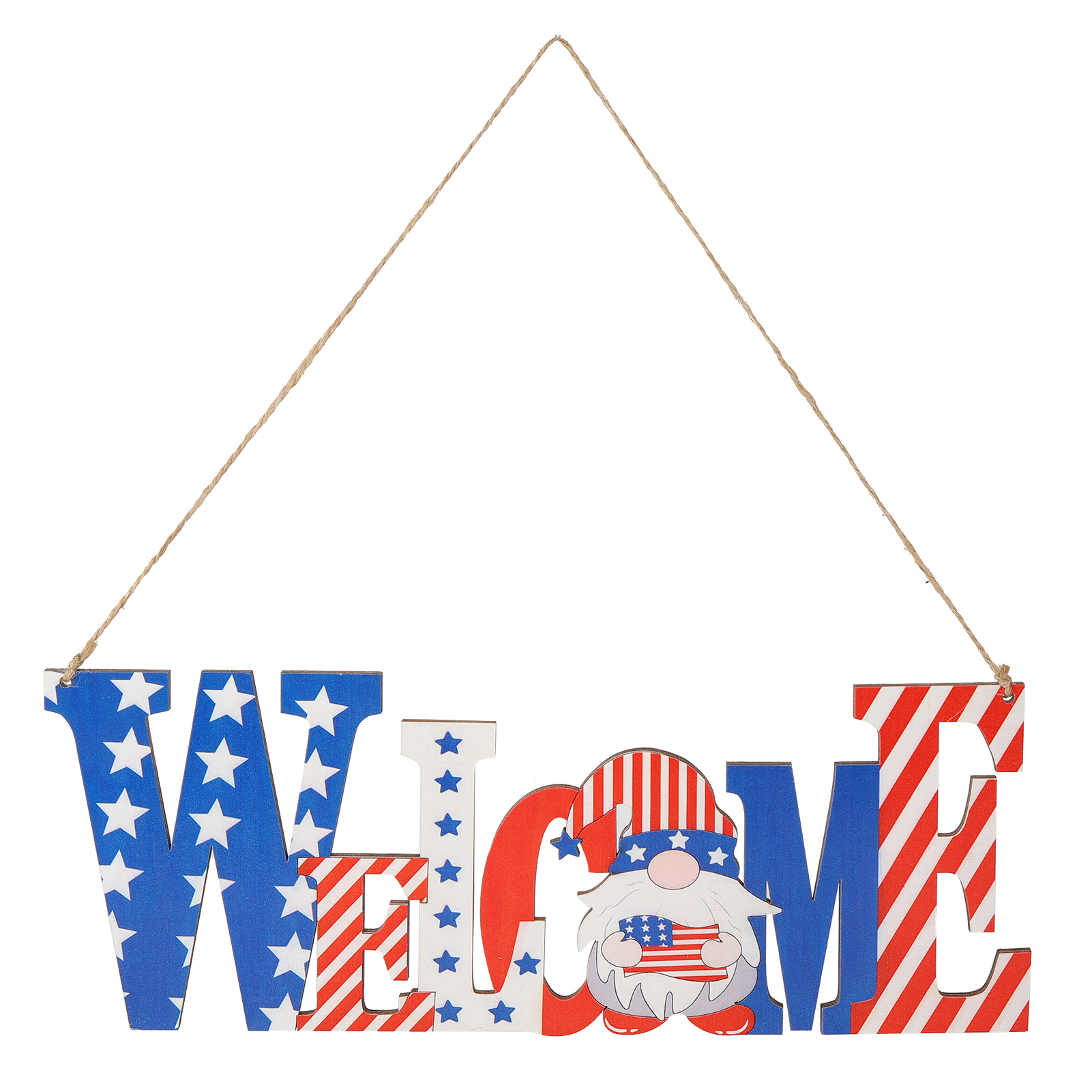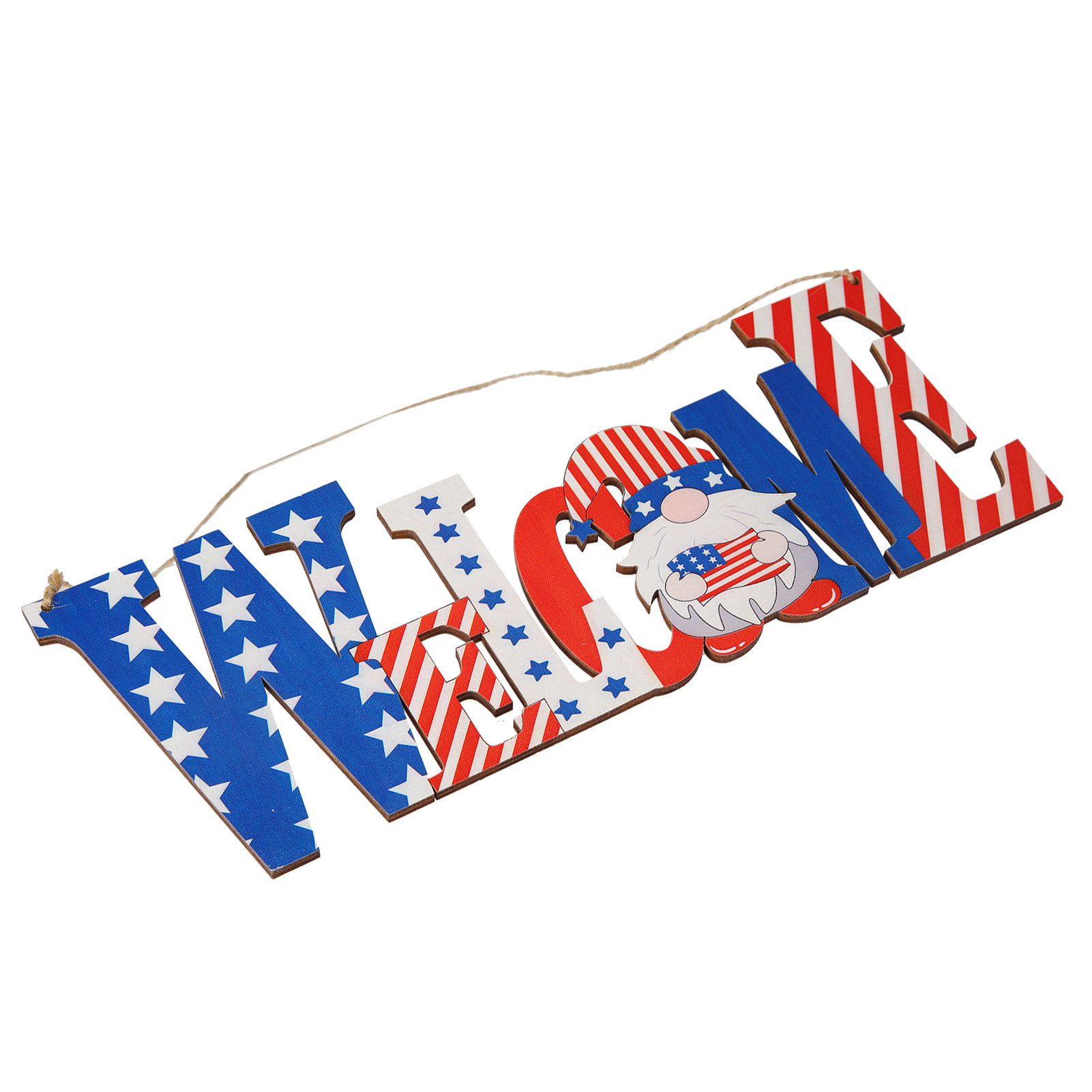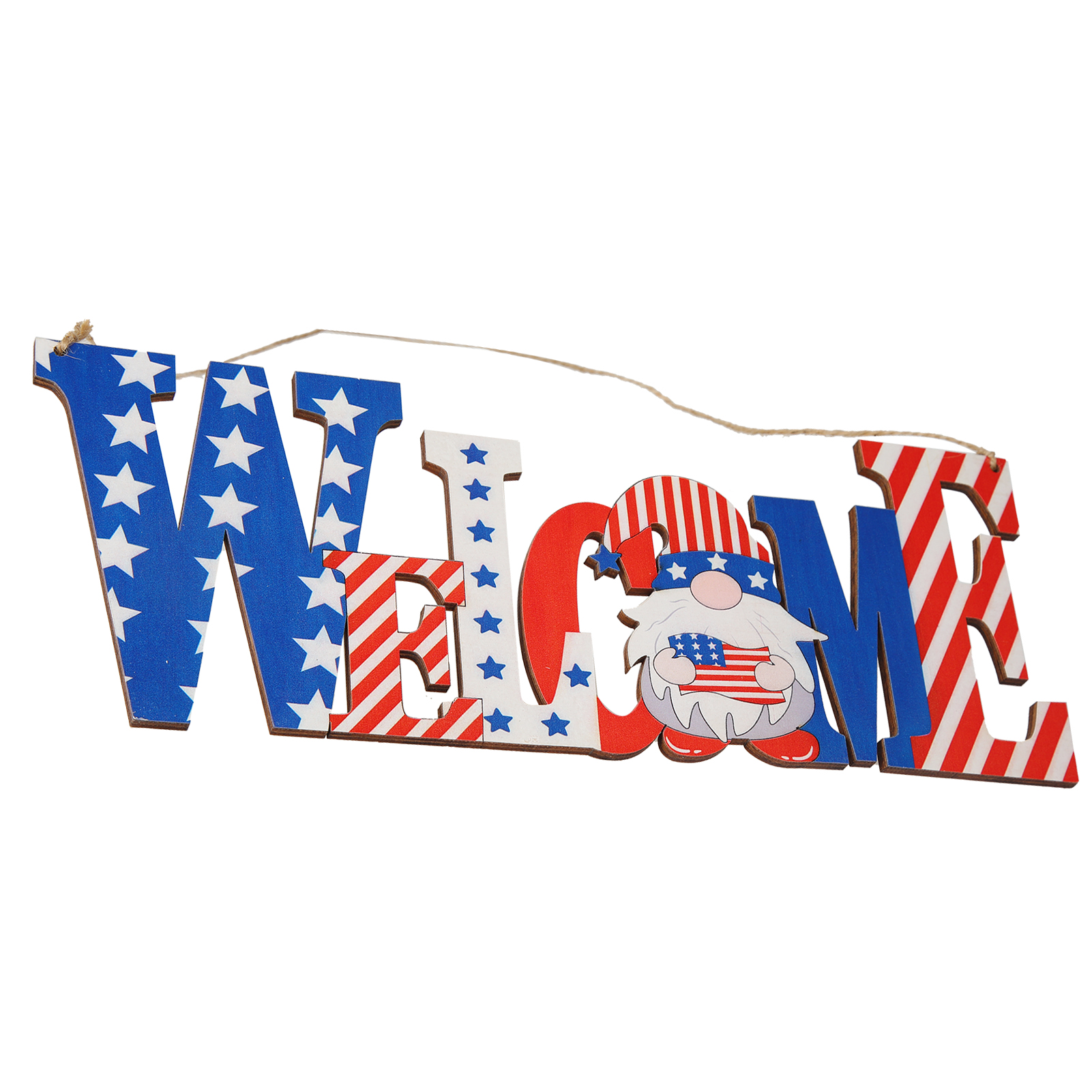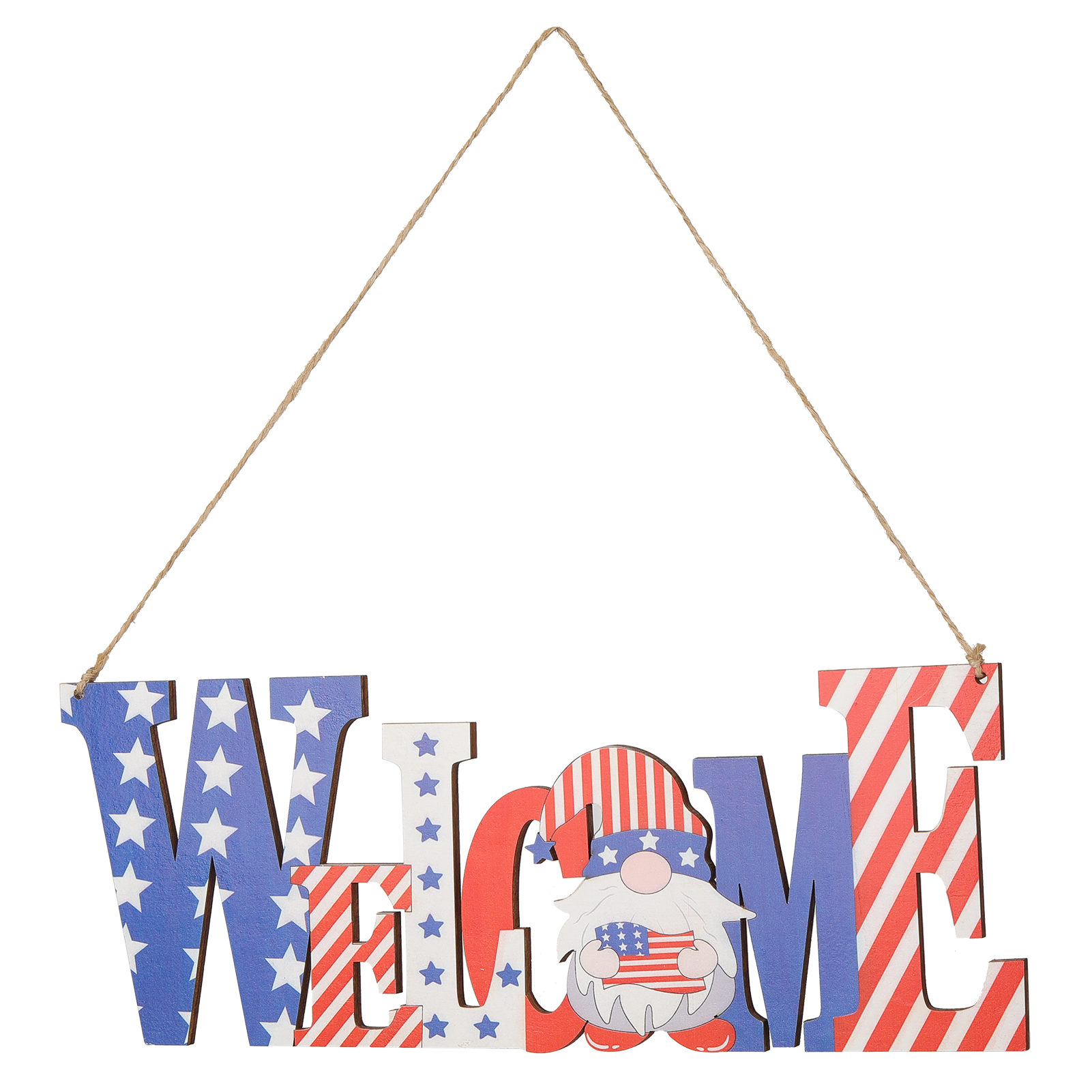 1、This is a DIY English letter sign decoration designed for American Independence Day, unique and beautiful. 2、Cartoon pattern design, bright color, unique color matching, overall looks cute and exquisite, can be perfect decoration. 3、This DIY welcome sign with English letters is easy to carry and easy to operate. Each sign is equipped with a strap, which can be removed or hung at any time. 4、Suitable for bedroom, living room, office, dining room and other places, can also be easily hung on the door or wall. 5、Made of high quality wood material, safe and eco‑friendly, stable structure, firm and sturdy, durable for use.