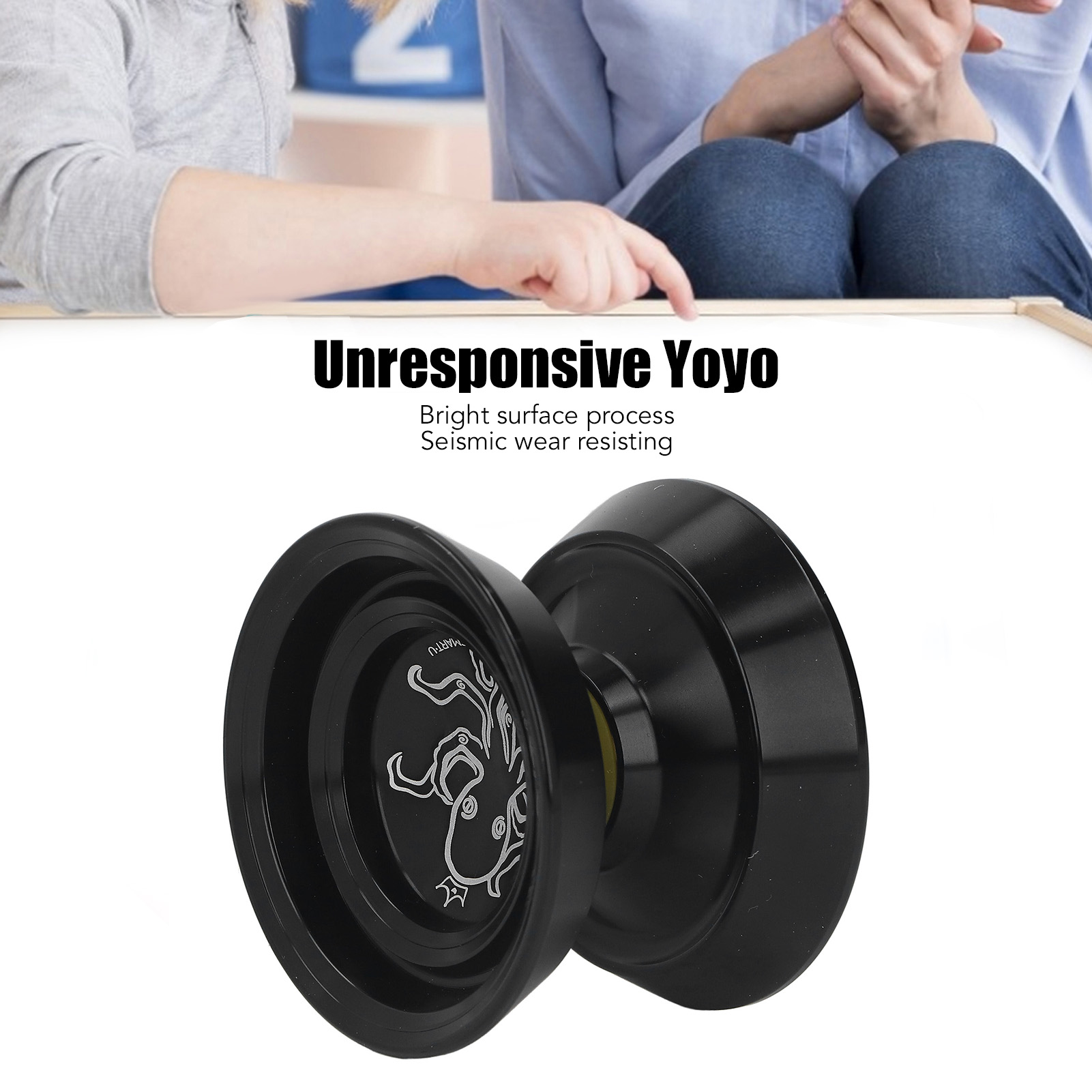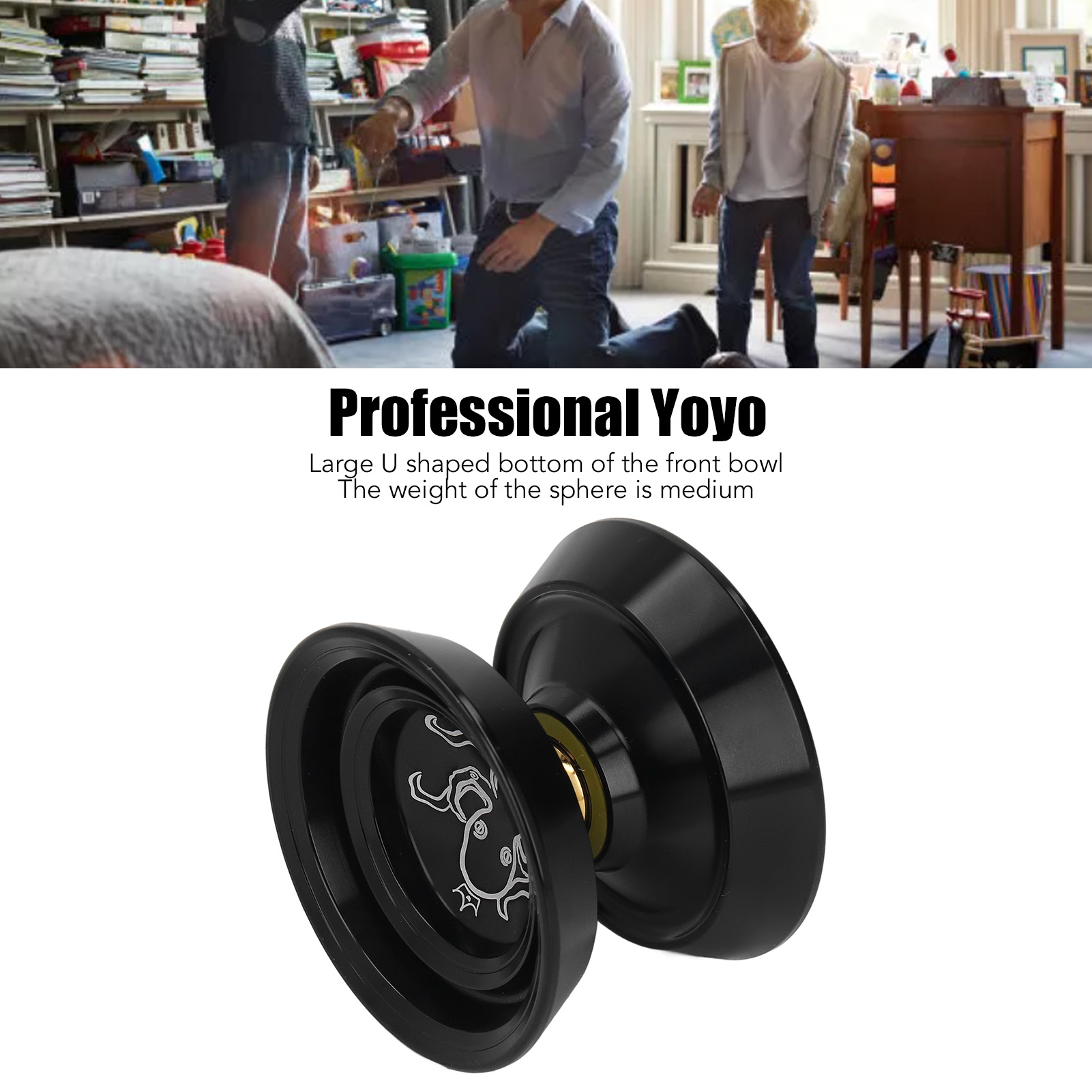Yoyo Ball Alloy Professional Unresponsive Yoyo Toy with Replacement Strings for Boys Glossy Black