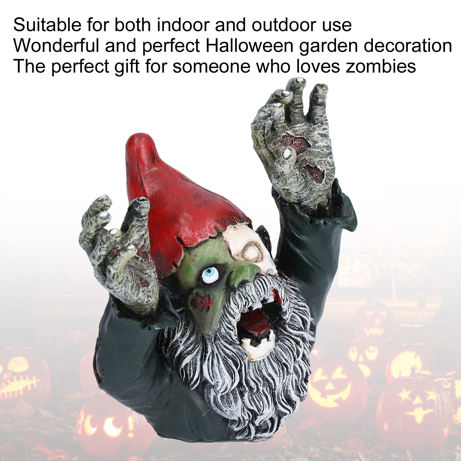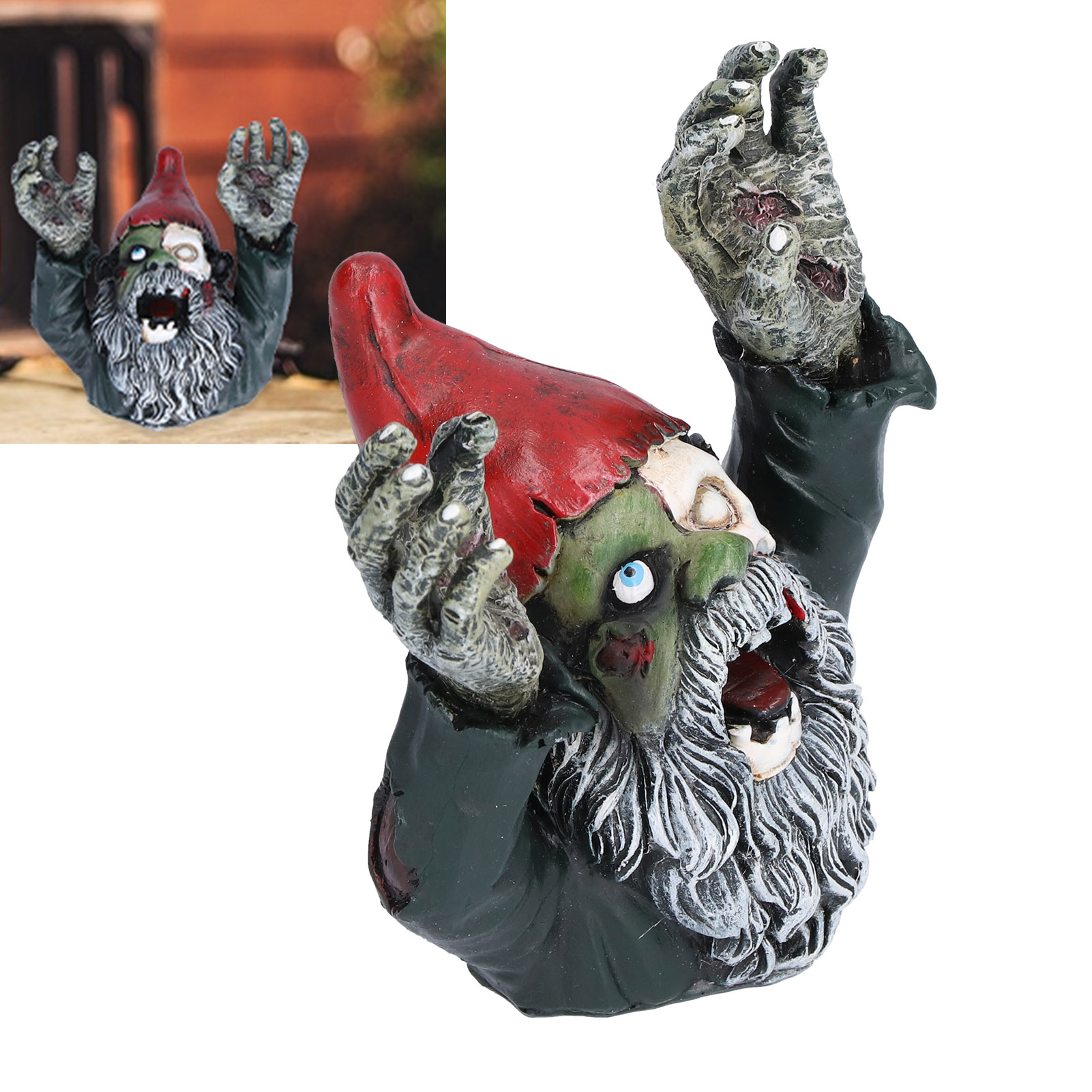 1、Suitable for both indoor and outdoor use, wonderful and perfect Halloween garden decoration accessory. 2、The perfect gift for someone who loves zombies, designed in a perfect size to be seen clearly from a great distance. 3、Eye‑catching garden statue is a perfect decoration to your garden, backyard, or indoor space. 4、About 10.5 x 10.5cm / 4.1 x 4.1in of the size, made of high quality synthetic resin material, durable and reliable in use. 5、Highly simulation appearance and fine details, special designed for Halloween part decoration.