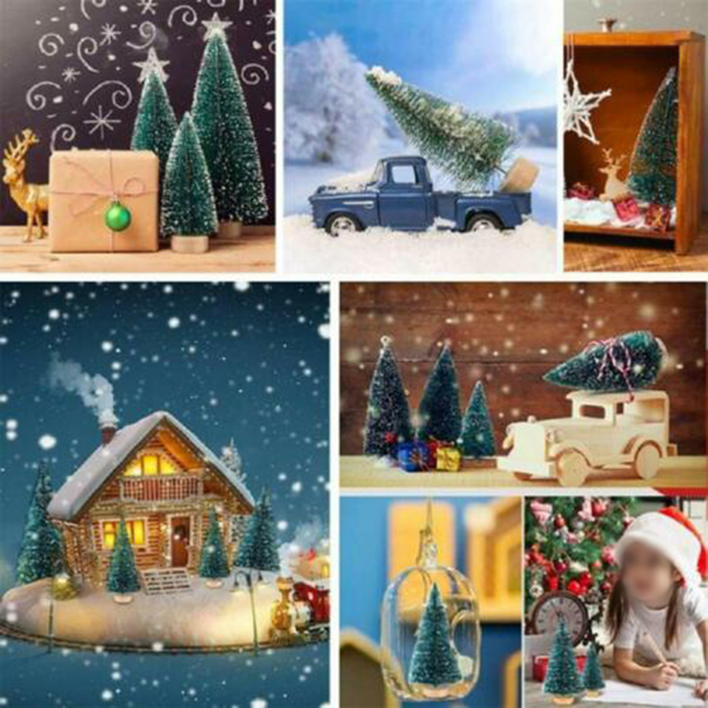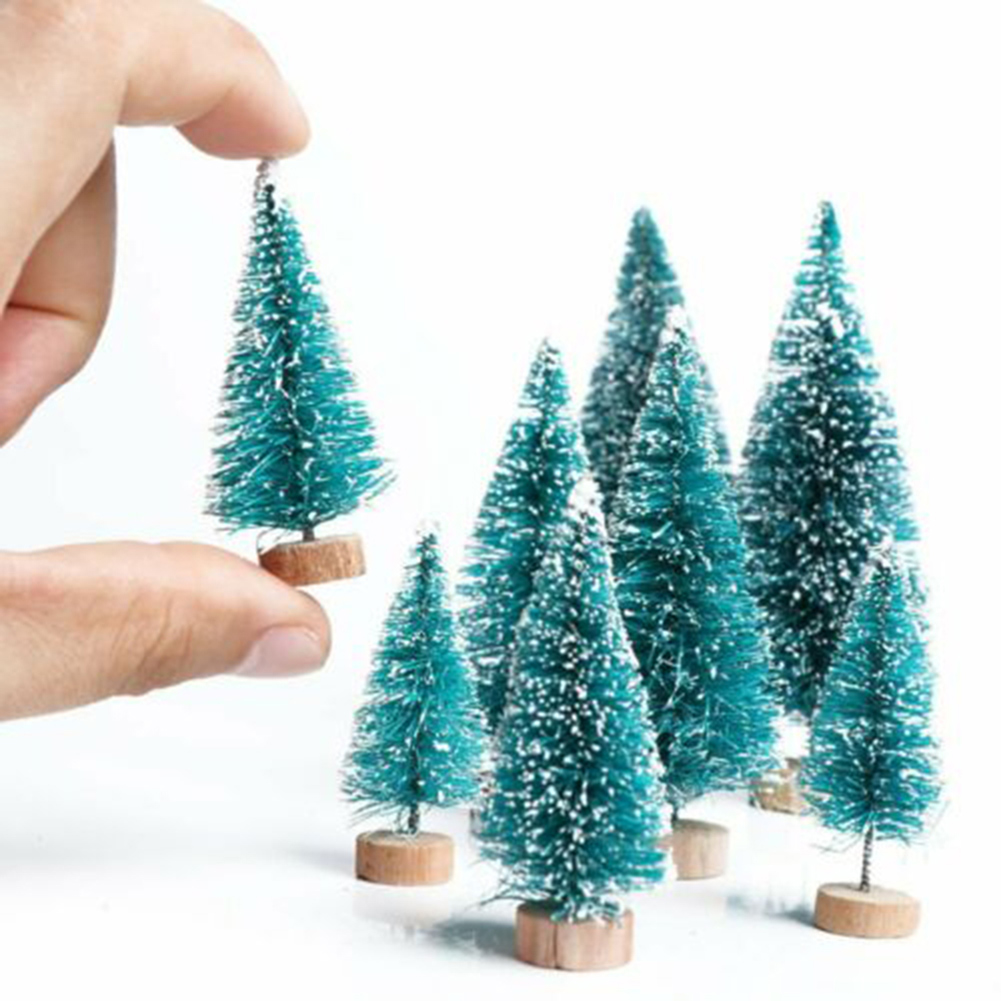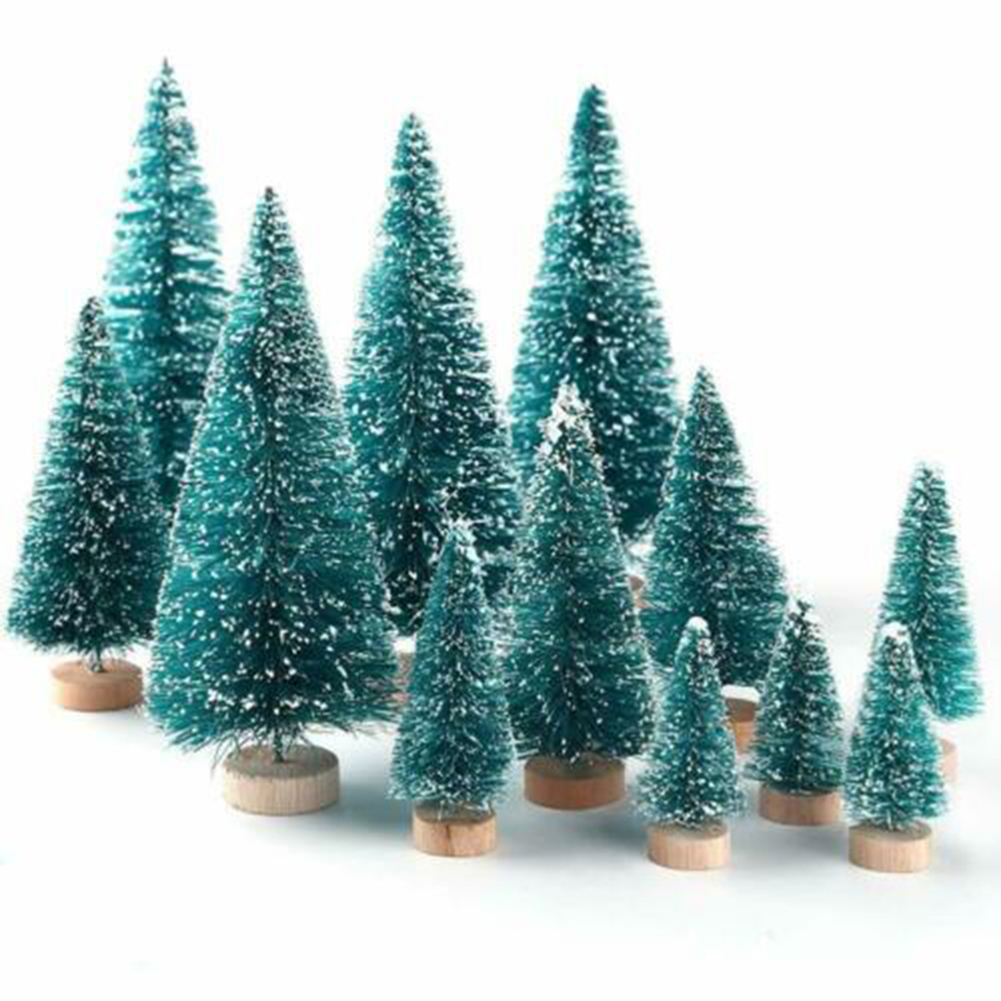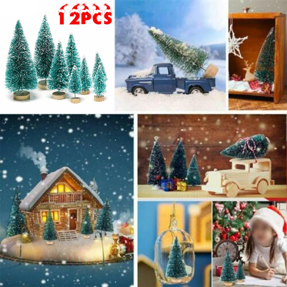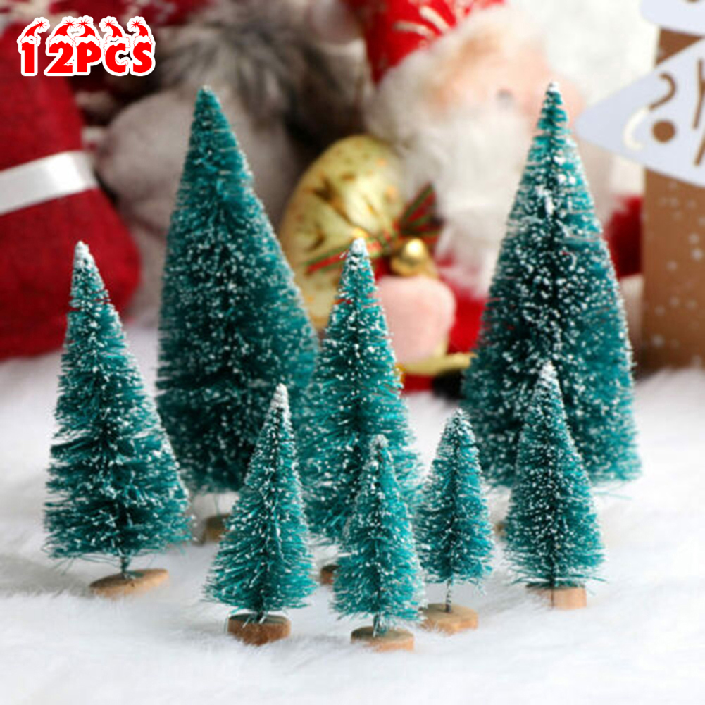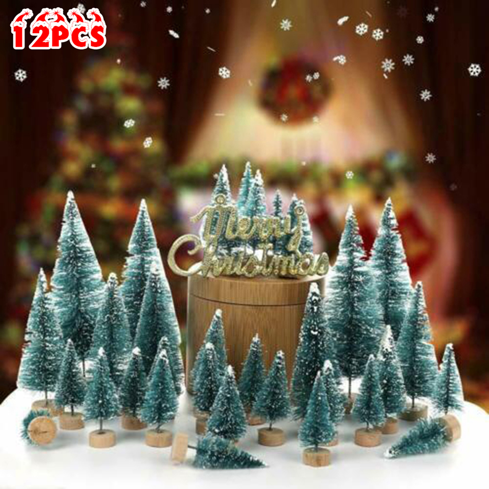 12Pcs Mini Sisal Christmas Trees Ornament Snow Frost Small Pine Tree Xmas Decor
