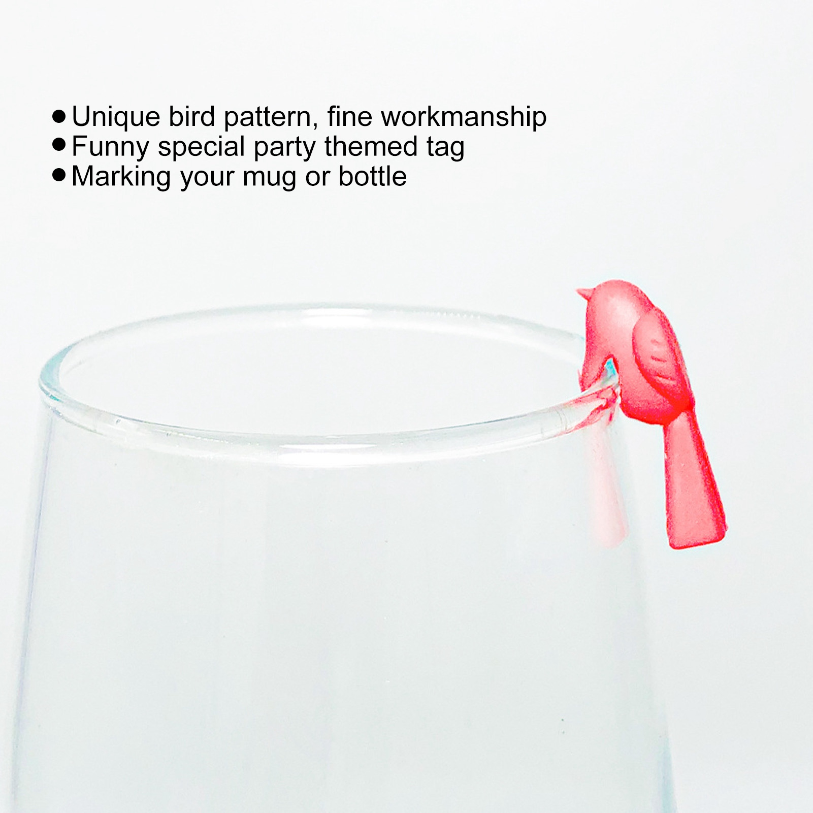 1、UNIQUE: Unique bird pattern with fine workmanship, marking your mug or bottle with a fun special party themed tag. 2、REUSABLE: Mini wine glass labels, easy to use and reusable, perfect for parties, bars, celebrations, ceremonies, etc. 3、PERFECT GIFT: The perfect gift for any wine lover, whether you like receptions and entertaining, it will leave an unforgettable feeling. 4、PREMIUM MATERIAL: These wine glass markers are made of high quality silicone material, which is safe, non toxic, flexible and durable. 5、SUFFICIENT QUANTITY: Contains a total of 4 sets (24pcs) of wine glass identifiers, which can be used for beverage glass, drinking cup, etc.