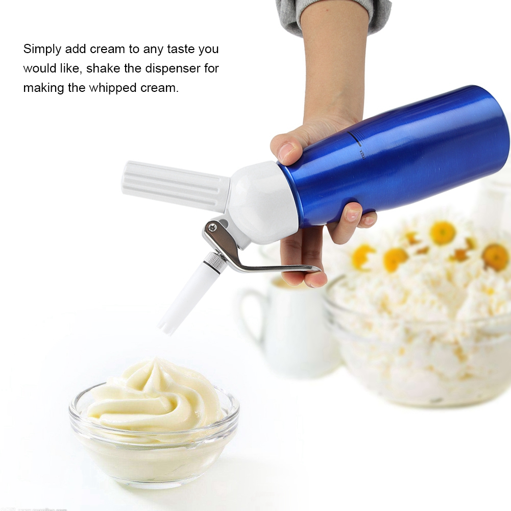 • Simply add cream to any taste you would like, shake the dispenser for making the whipped cream.