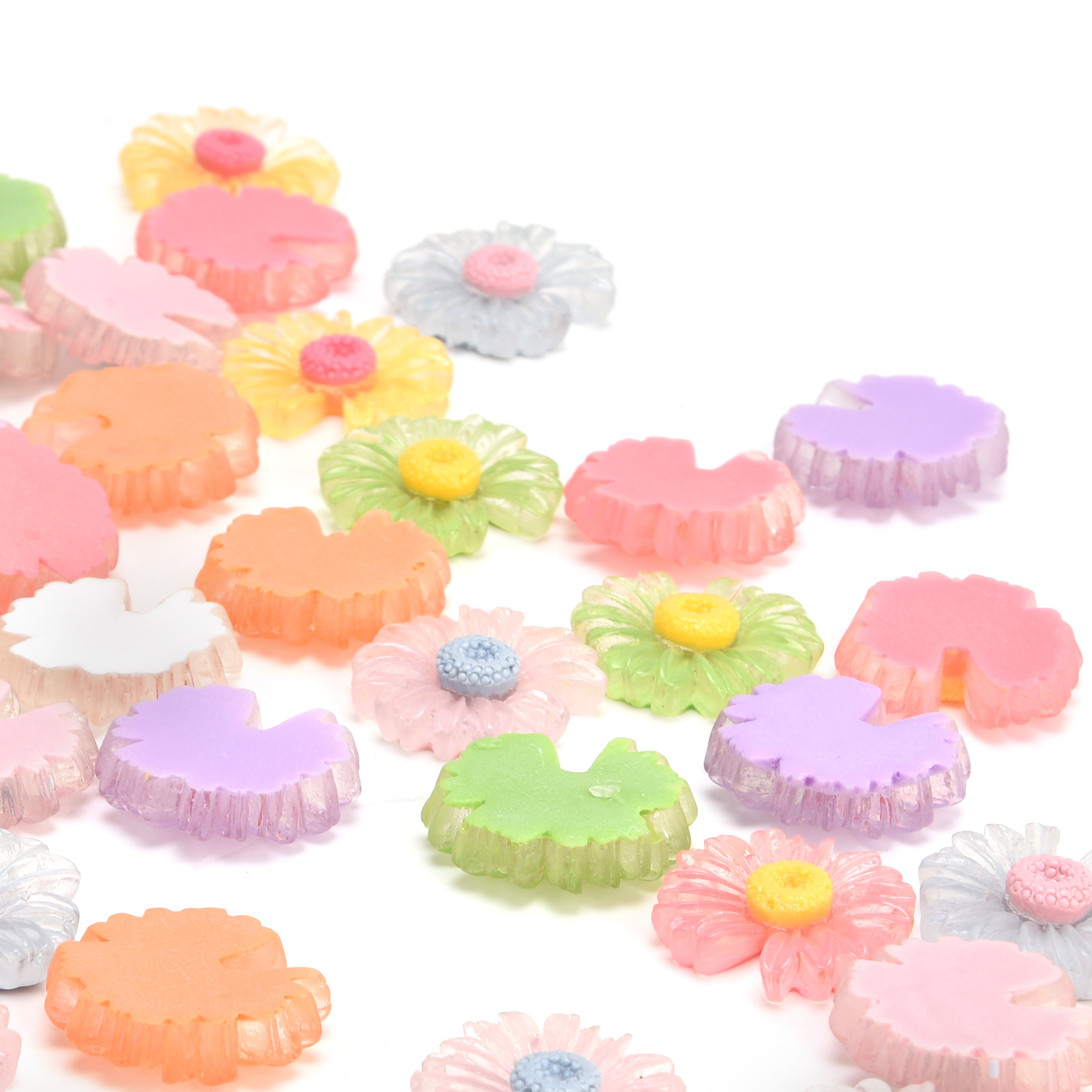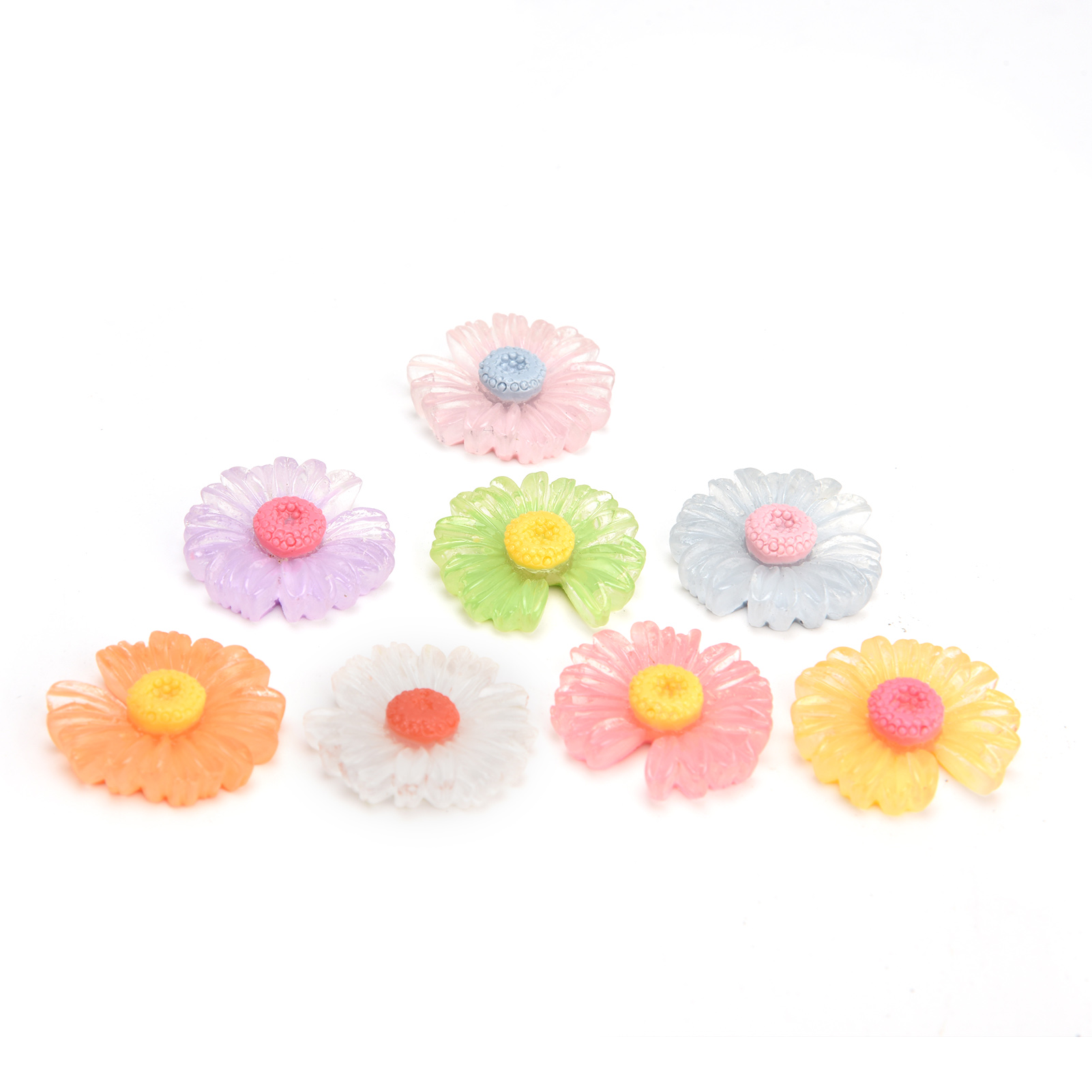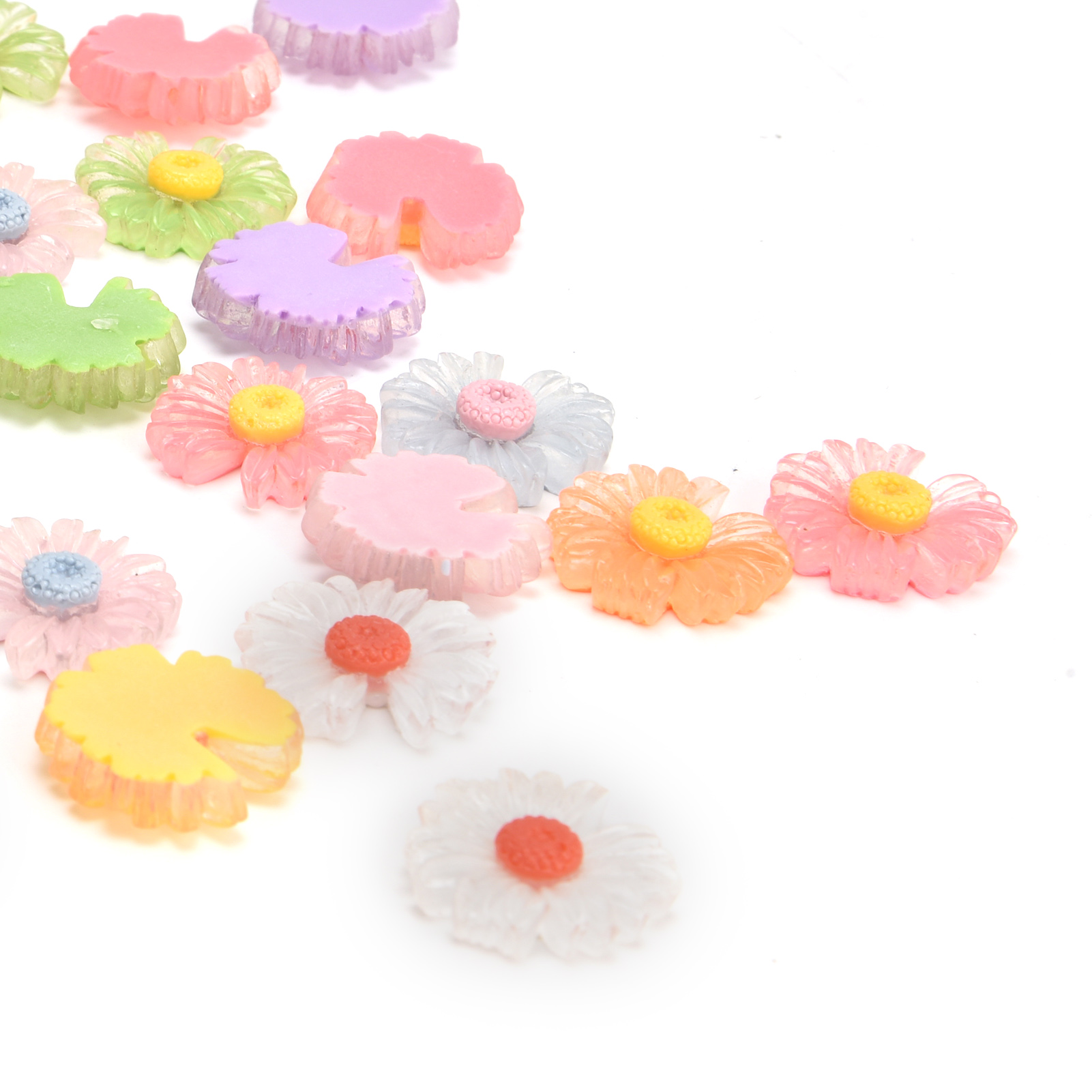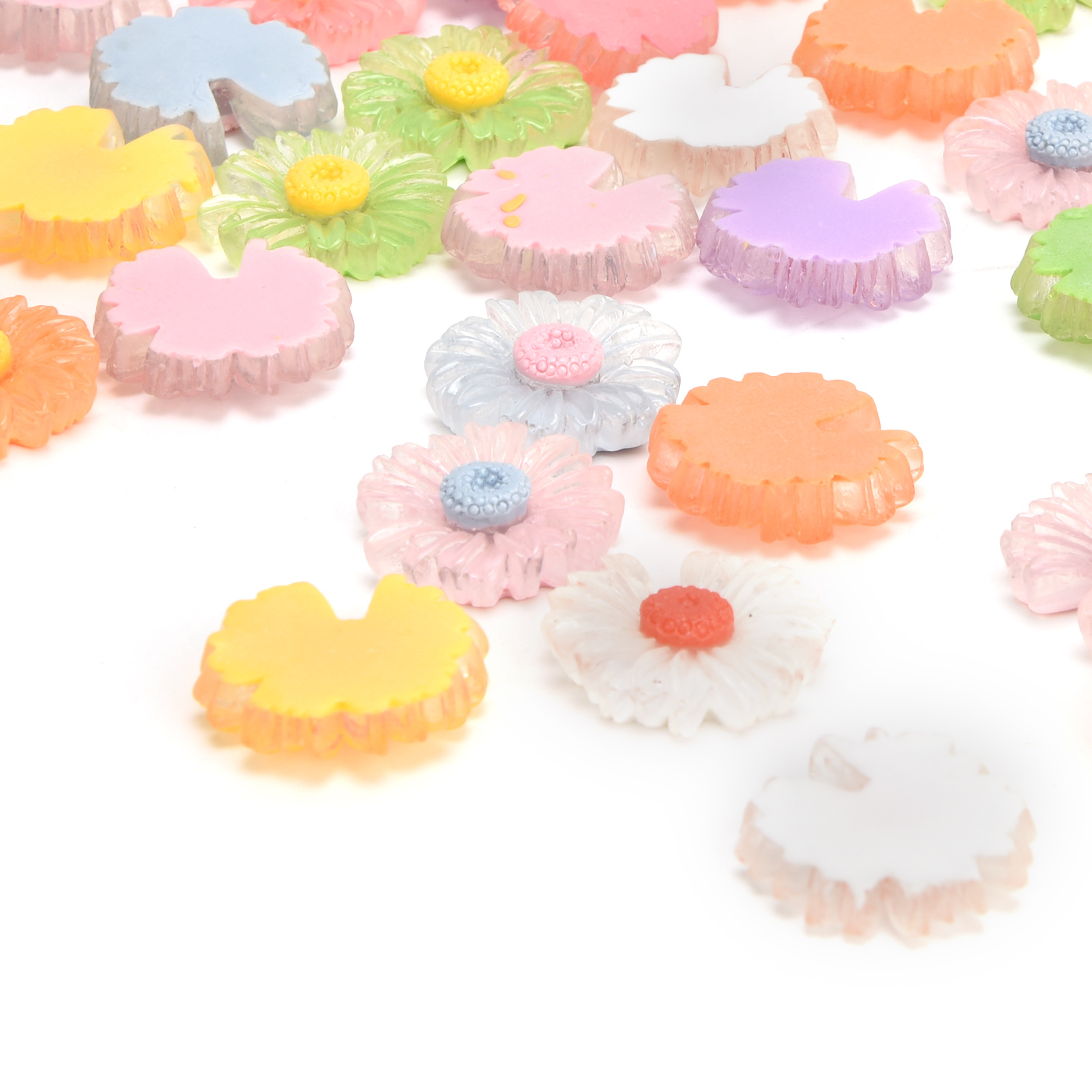 50PCS Daisy Flower Pattern Resin Decoration for DIY Children Headwear Hairpin Accessories