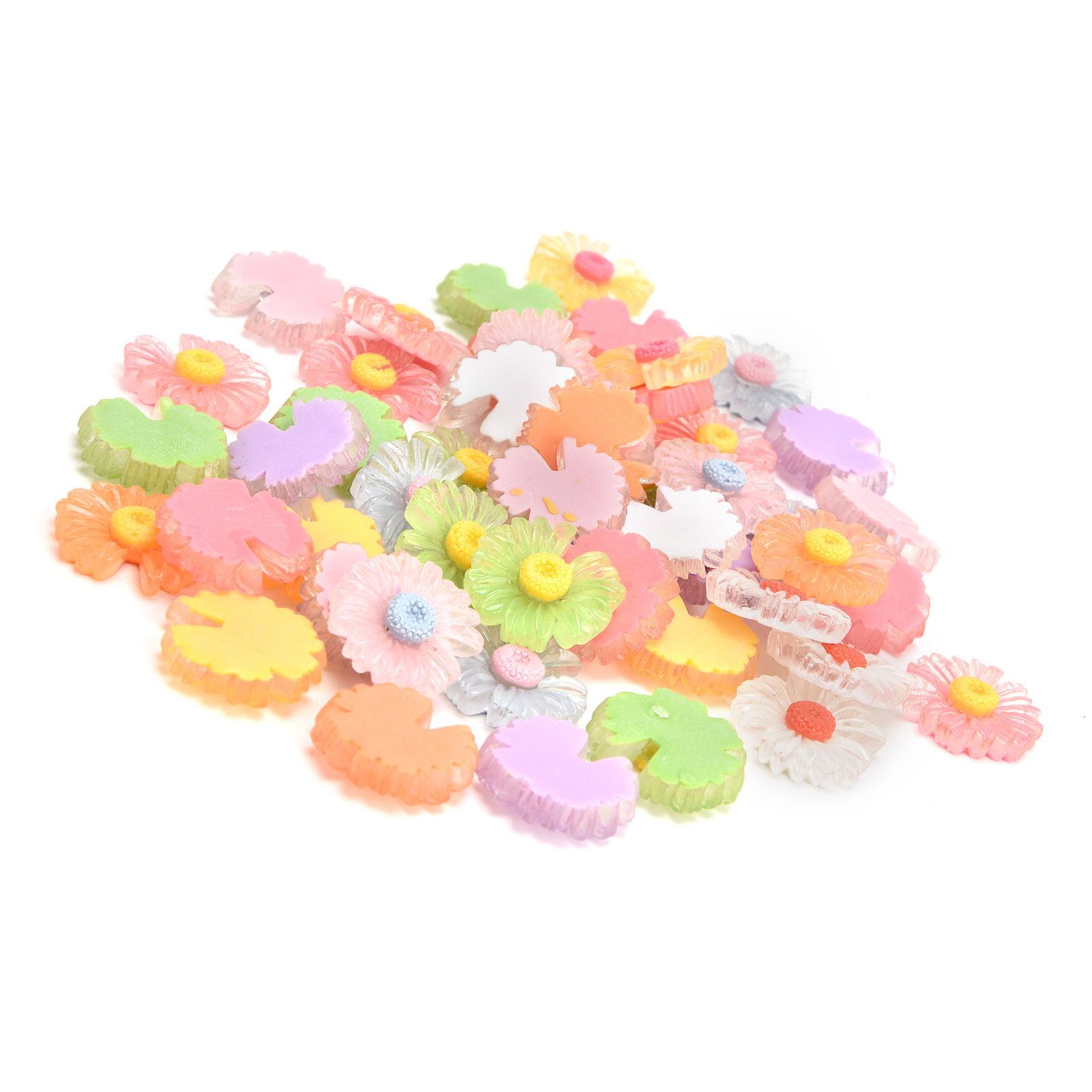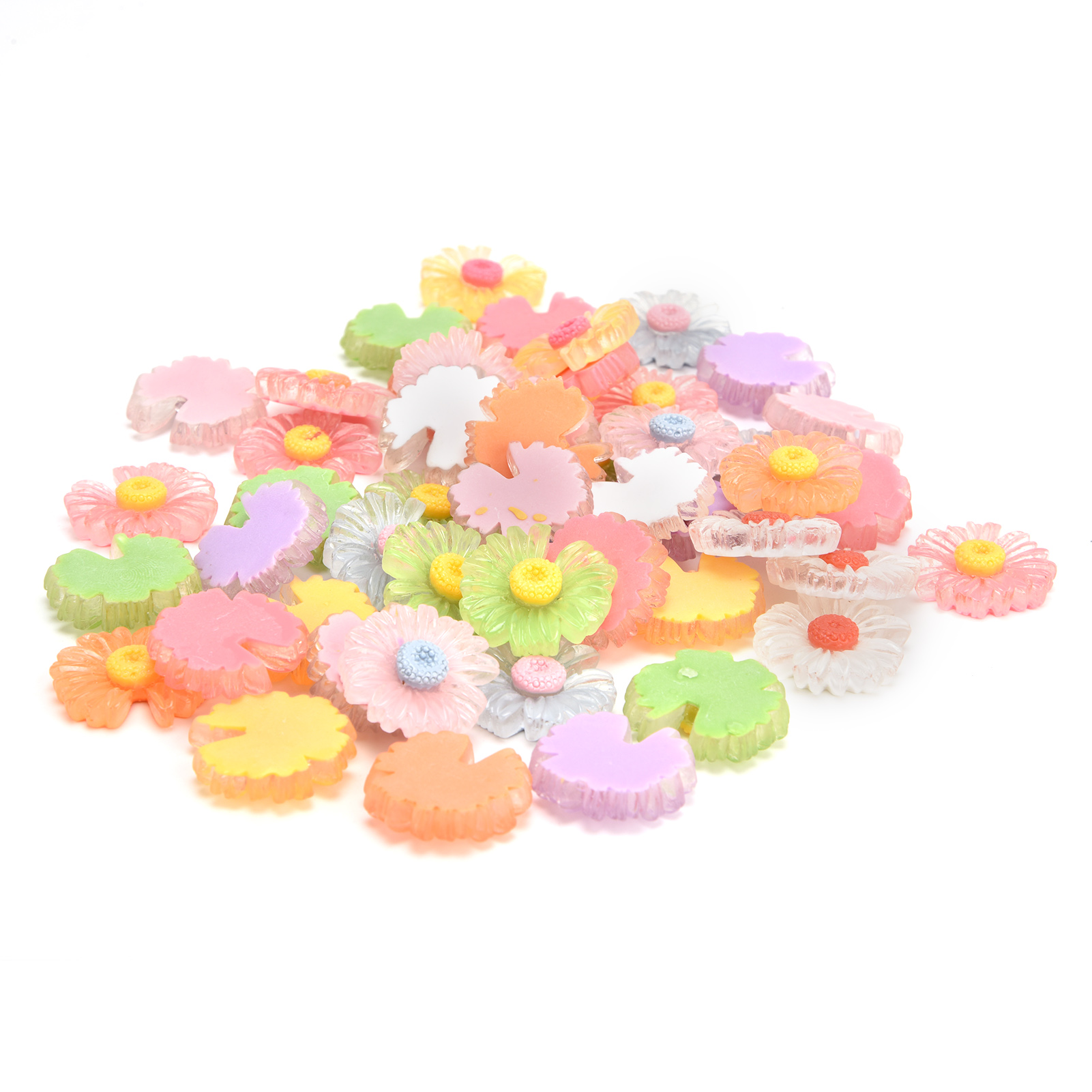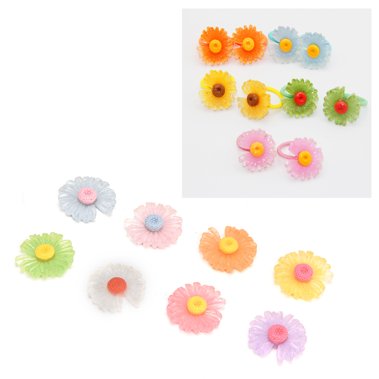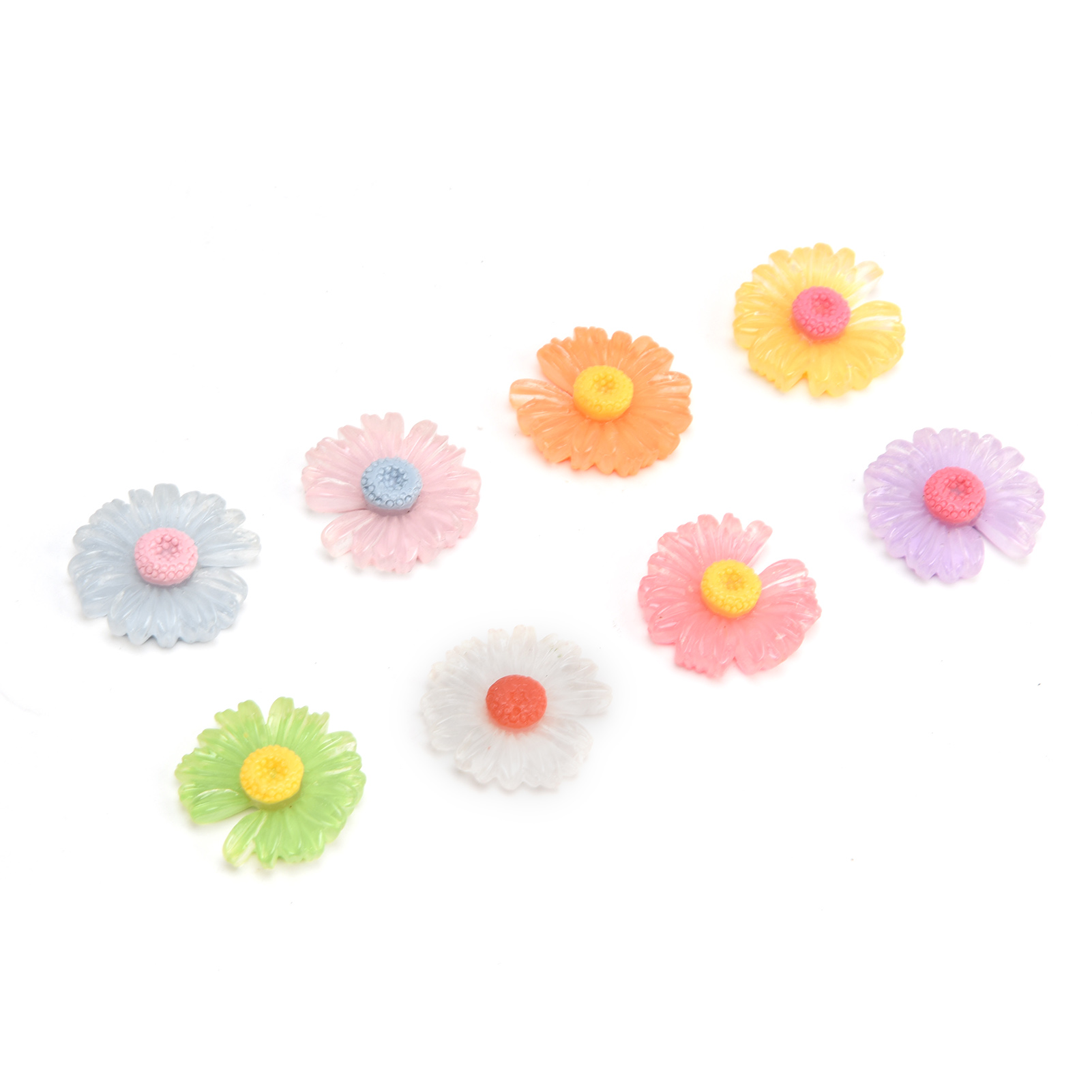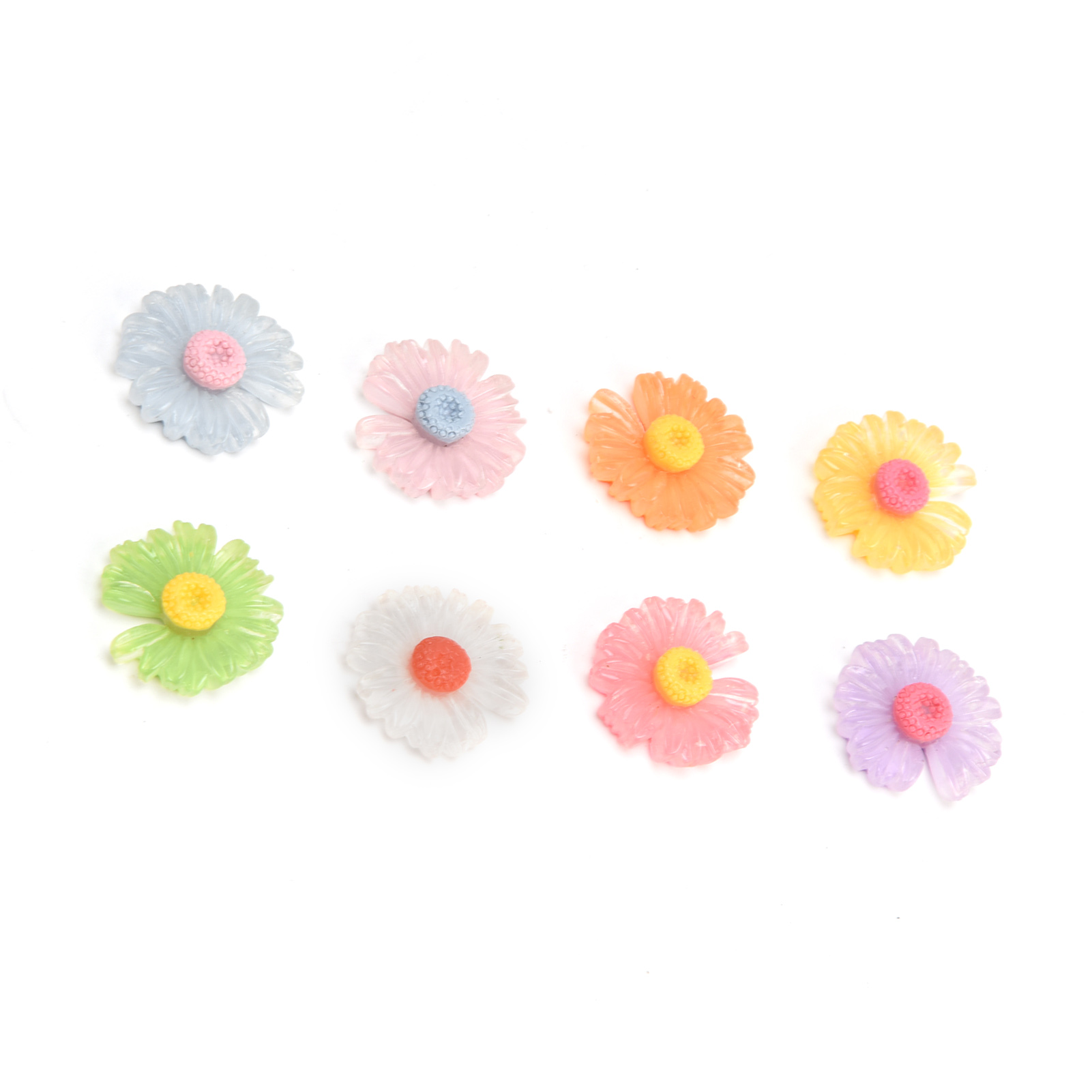 50PCS Daisy Flower Pattern Resin Decoration for DIY Children Headwear Hairpin Accessories