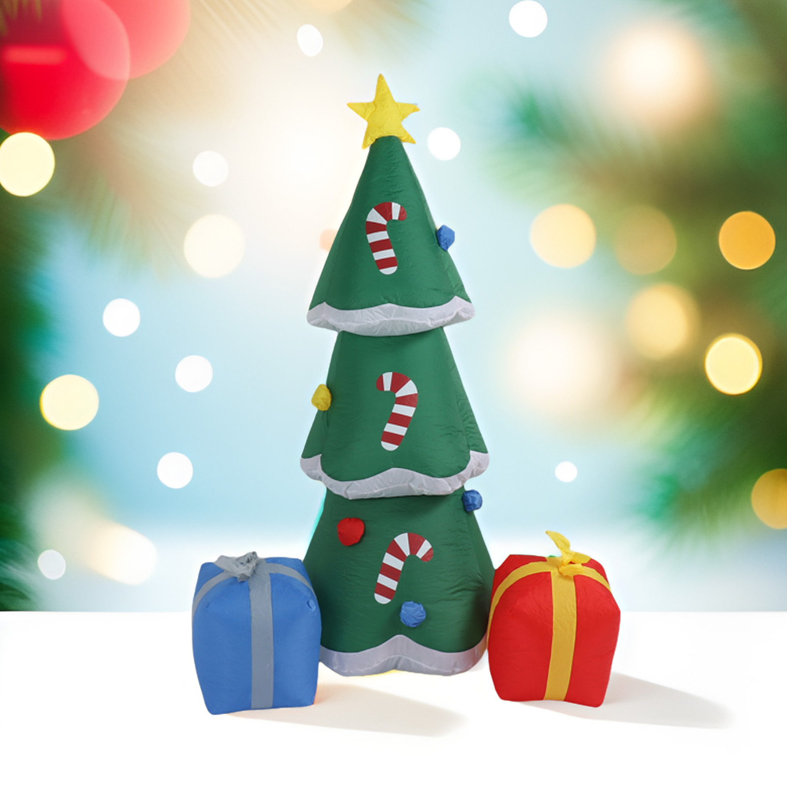 1、CHRISTMAS DECORATION: 1.8 meters Christmas tree decoration, lifelike, creating an active ambience for you. 2、WITH PULL CORD: Inflatable Christmas tree adopts high strength nylon pull cord for product fixing, convenient for you to fix the decor in your favorite place. 3、LOW NOISE: Christmas tree inflatables outdoor decoration adopts high speed low noise fan, low noise all day long, quiet and safe to use. 4、ELECTRIC INFLATABLE: The product can be automatically inflated by plugging in the power supply, no need to pump, convenient to use. 5、APPLICATION SCENARIO: Blow up christmas tree is suitable for both indoor and outdoor use, can add fun and surprise to your front yard, backyard, porch or party.