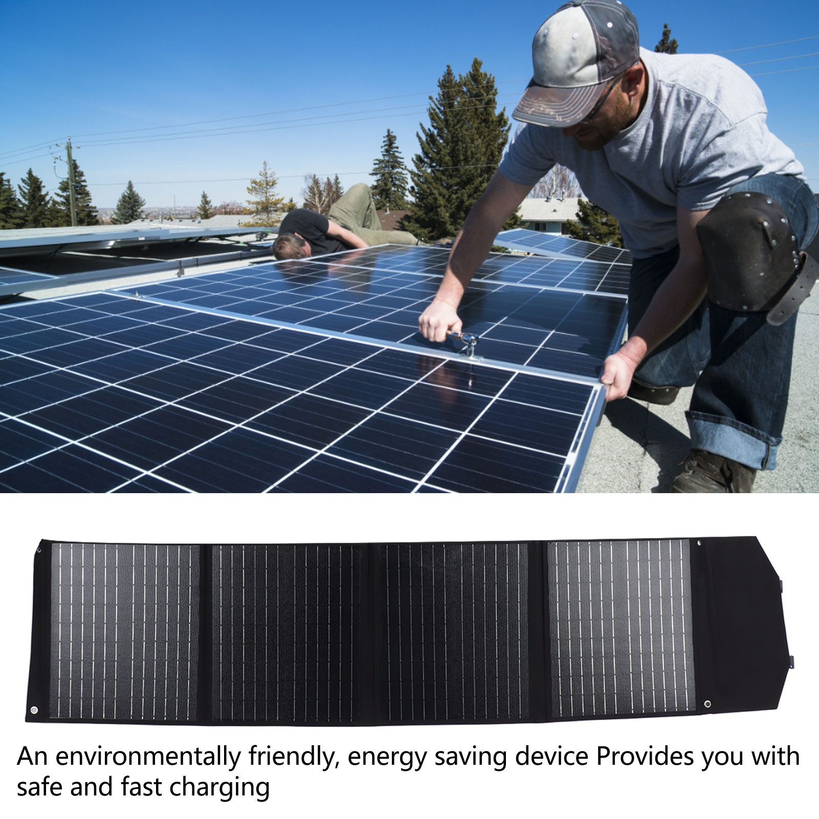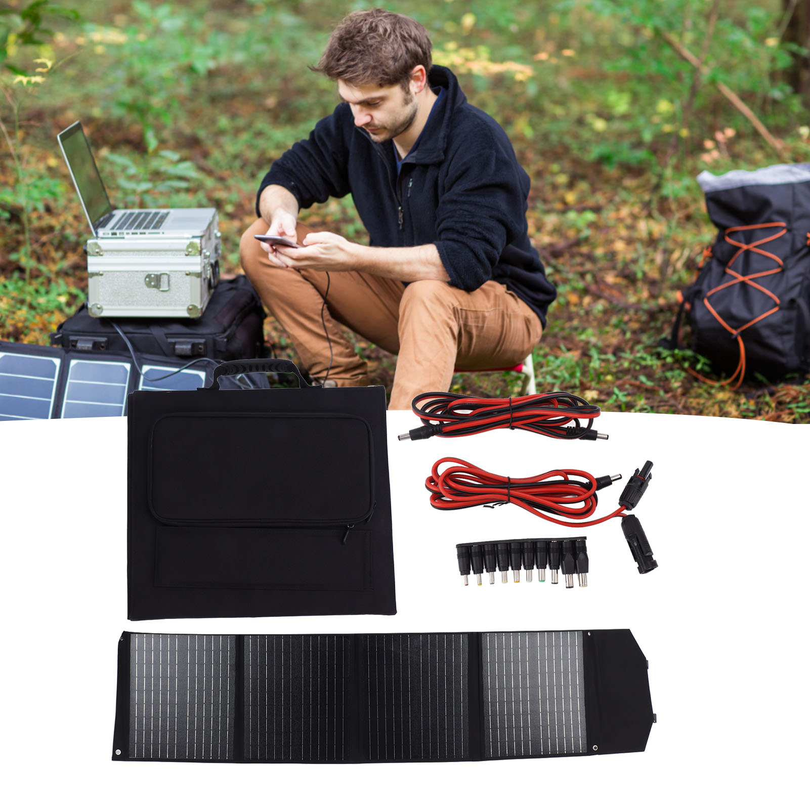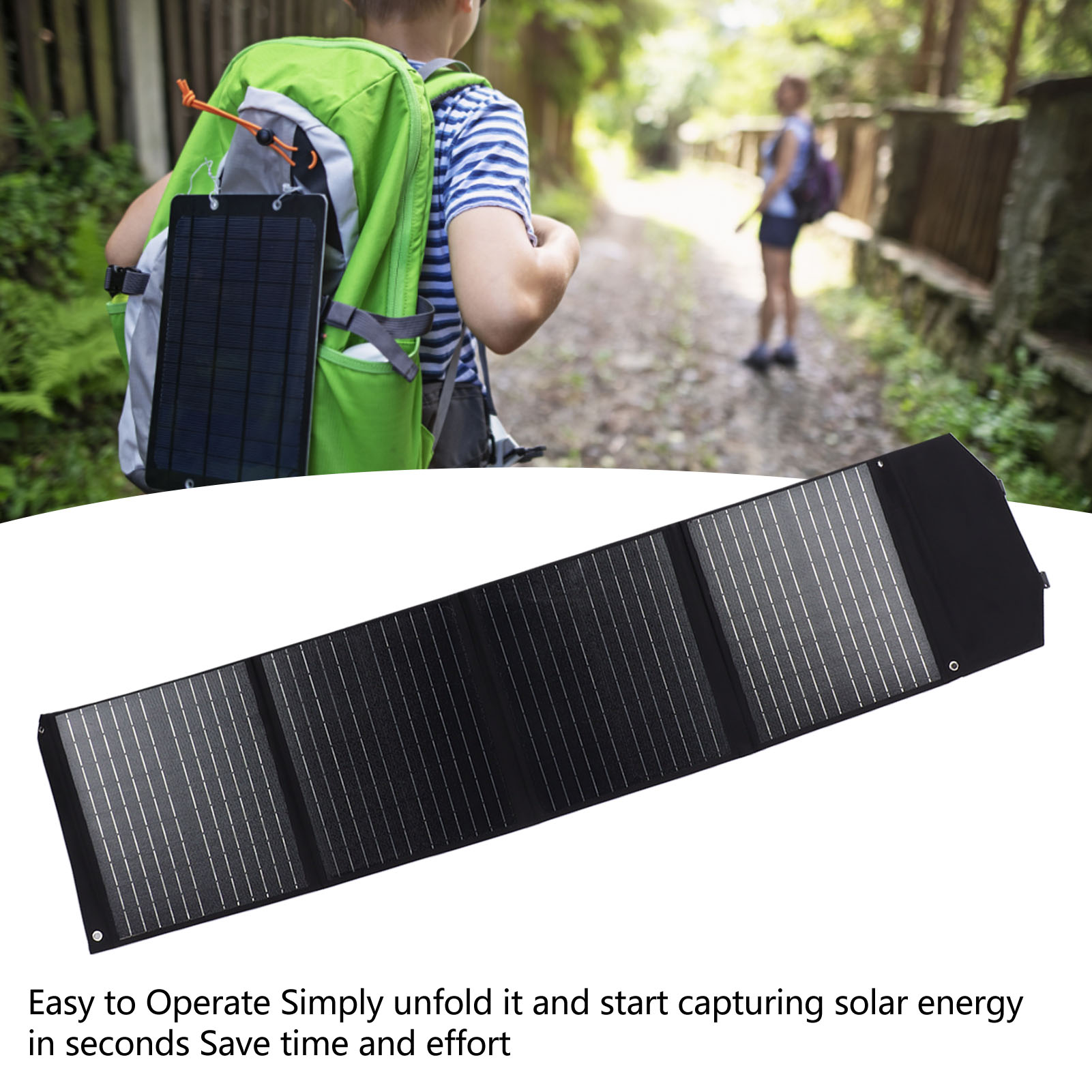 1、COMPACT AND PORTABLE: Foldable solar panel with light and compact structure design, can be carried around, very convenient to use in the outdoors. 2、WATERPROOF: This folding solar panel is equipped with waterproof materials to fully guard your phone and solar charger for a longer life. 3、SOLAR CHARGING: As long as there is sunlight, the solar panel folding bag charger can make your mobile devices such as cell phones fully charged, suitable for camping, outdoor activities. 4、EASY TO USE: The foldable solar panel battery charger is easy to operate, just unfold it and start capturing solar energy in seconds, saving time and effort. 5、ENVIRONMENTALLY FRIENDLY: Solar panel charger is pollution free, an environmentally friendly and energy saving device that provides you with safe and fast charging.
