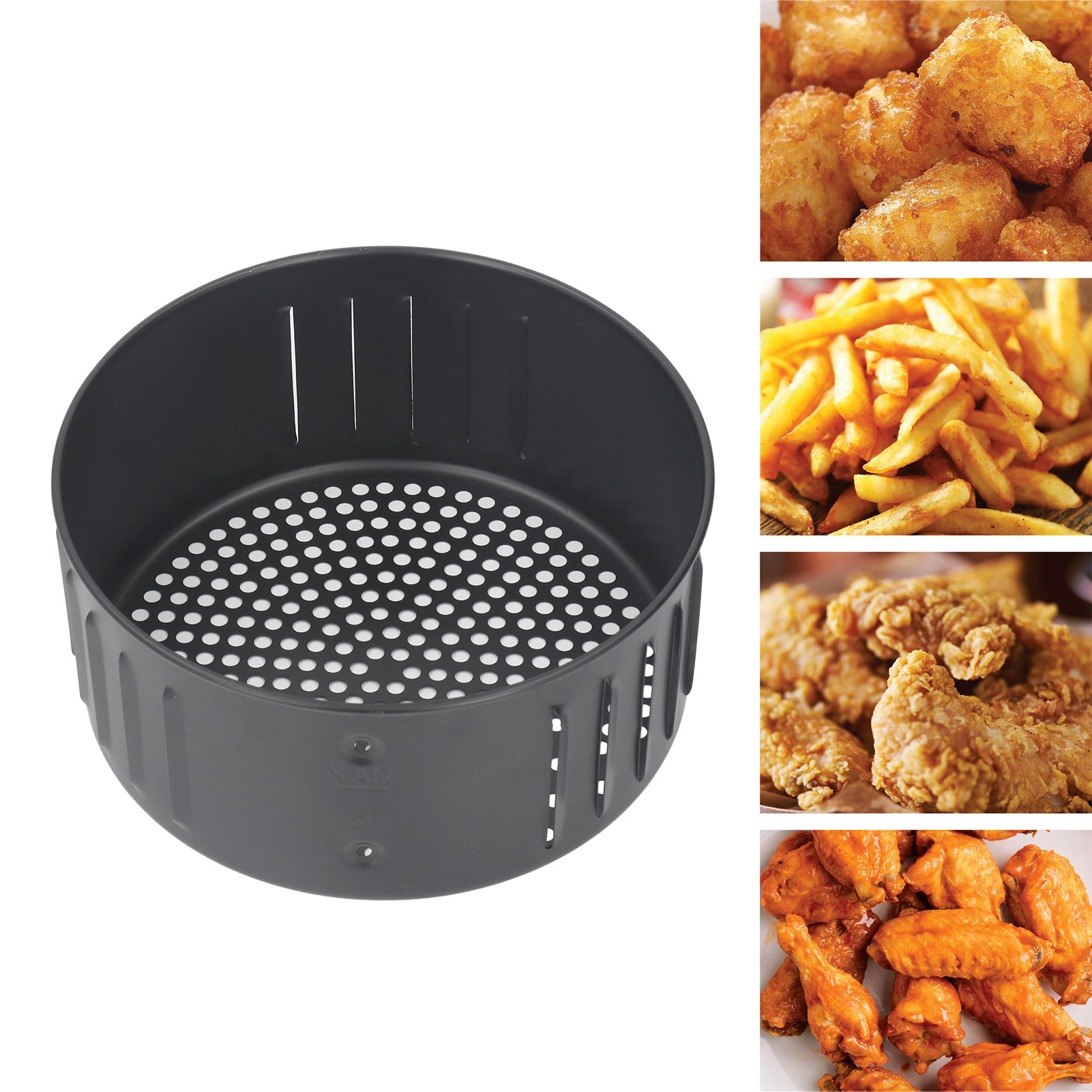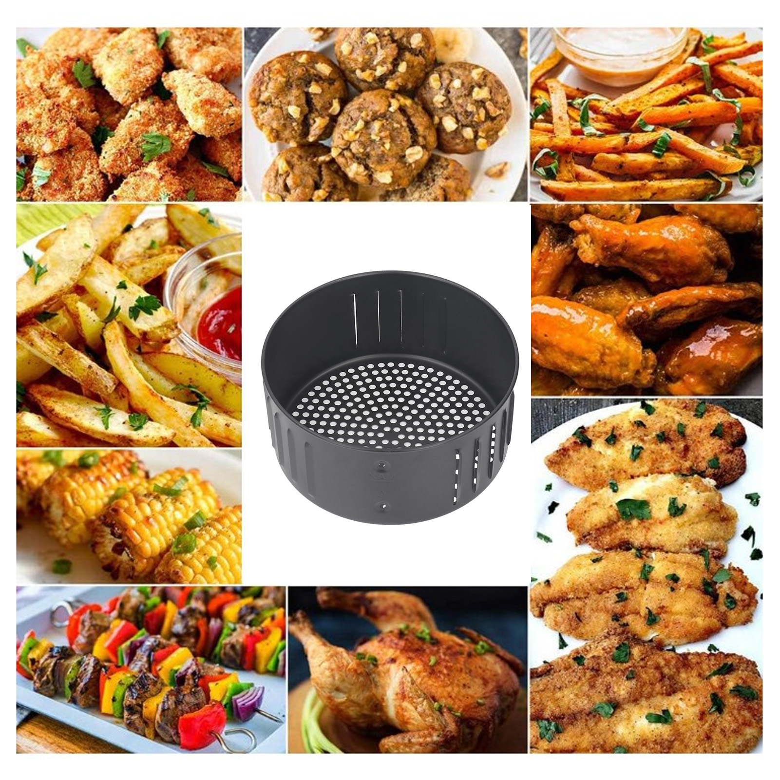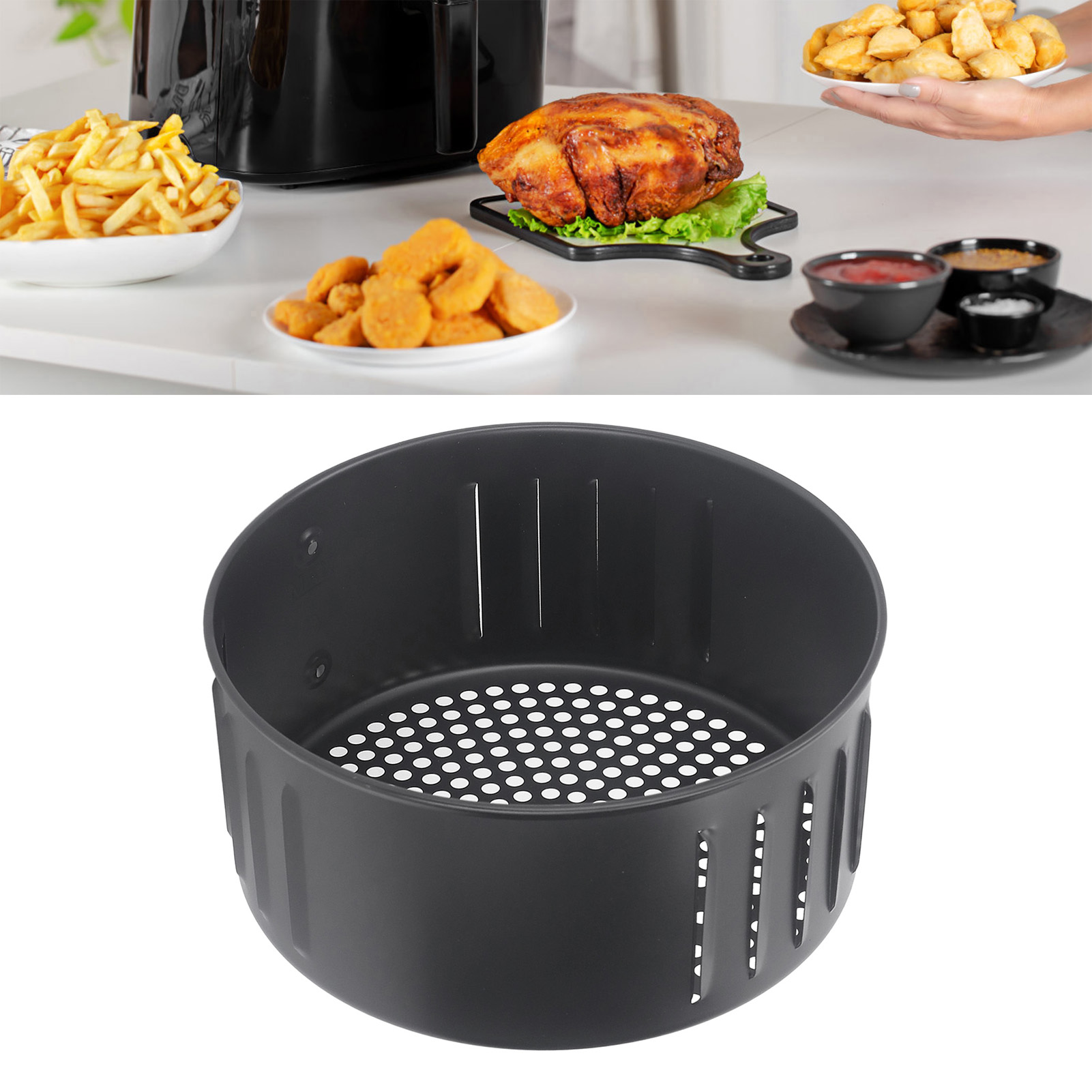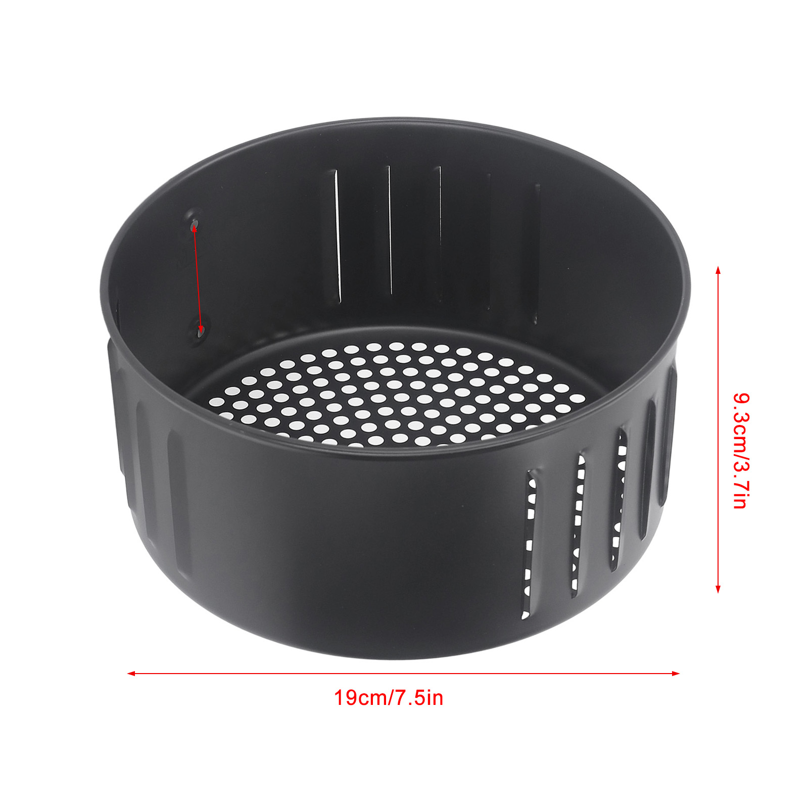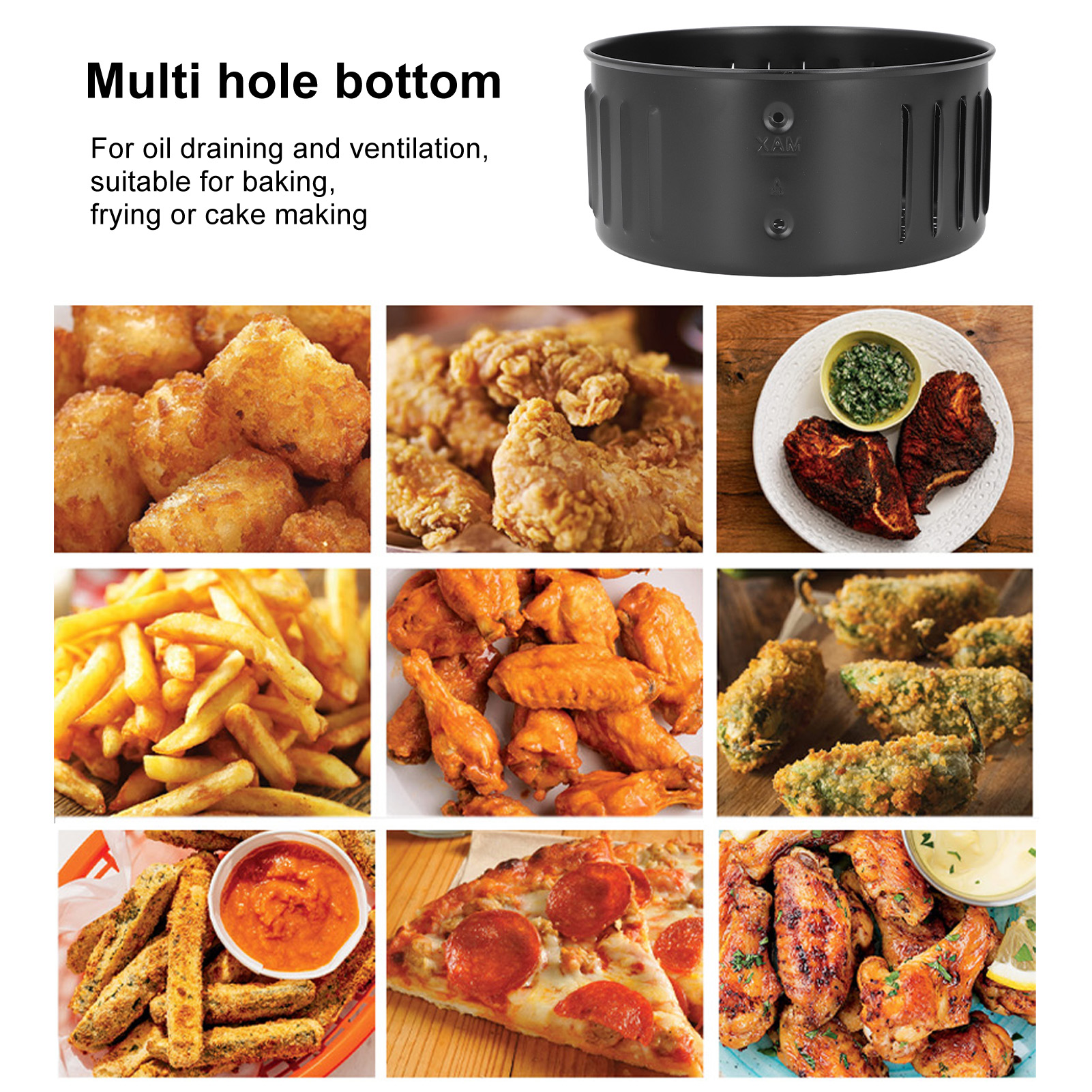 1、Safe Steel Material: Made from food grade steel, our fryer basket ensures healthier cooking and durability, while the non stick coating makes it effortless to remove food from the fryer. 2、Bottom Holes: The bottom of the basket features multiple holes, allowing for efficient oil drainage and consistent airflow, making it perfect for frying, baking or making cakes. 3、Reusable and Versatile: Our fryer basket can be used as a replacement for the inner pot of other fryers, ensuring even heating and eliminating the risk of unnecessary fire hazards. 4、Compact and Easy to Clean: With its compact size and non stick coating, our fryer drainer basket is easy to clean and store, making it a convenient kitchen accessory. 5、Universal Fryer Accessory: With a generous 2.6L capacity and perfect size, our fryer basket is a versatile tool that fits most fryers, enhancing your cooking experience in the kitchen.