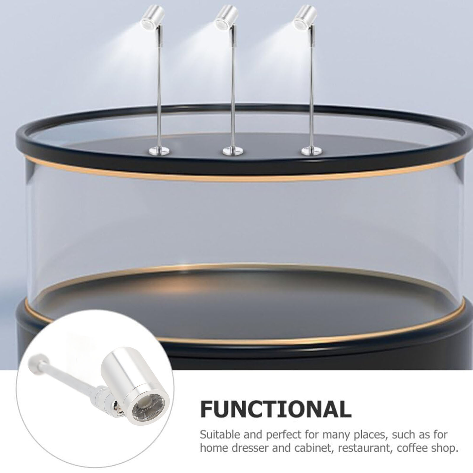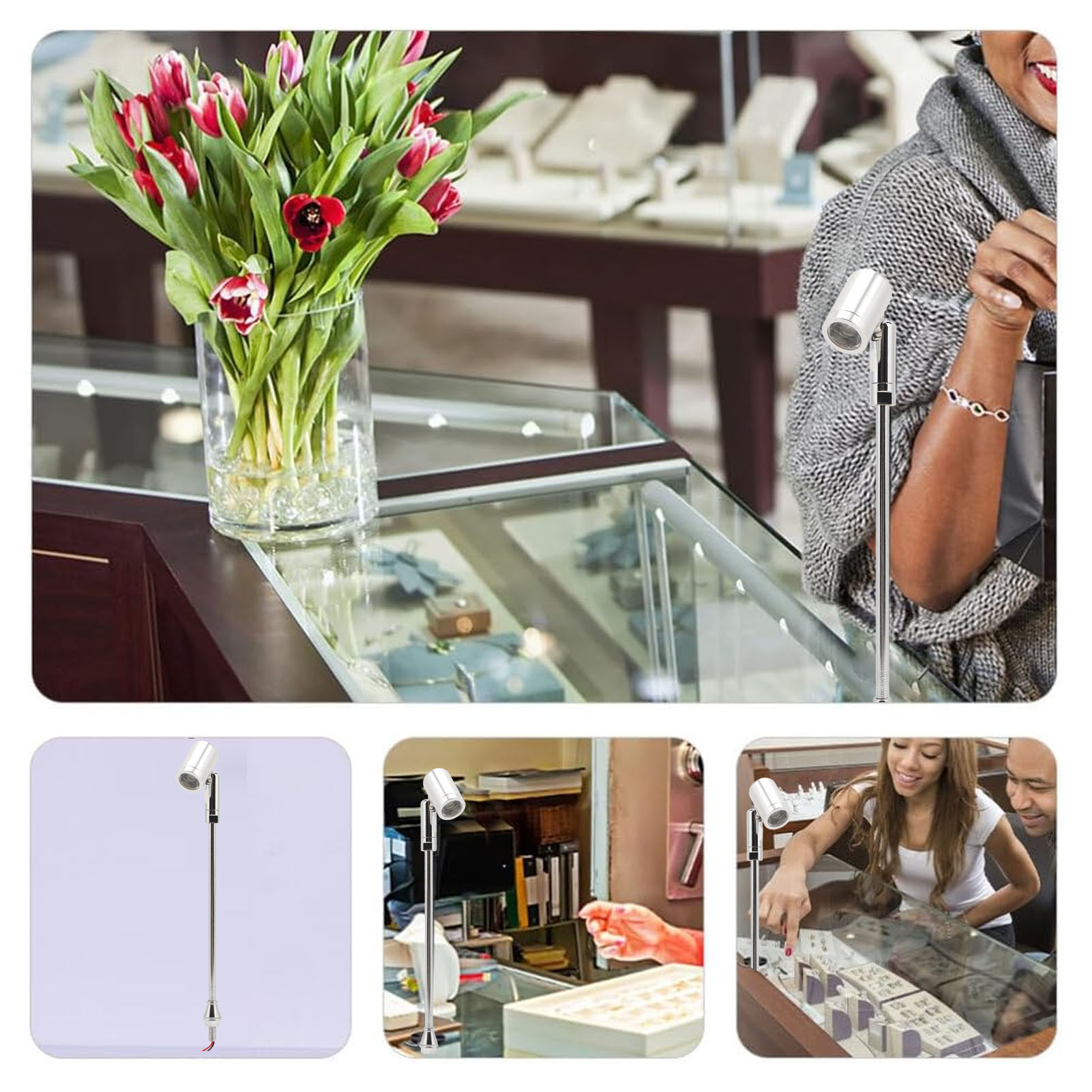 1、Adjustable Head Design: The small LED spotlight features a adjustable head, allowing you to change the lighting direction to meet various illumination angle requirements. 2、Sturdy and Durable: Made of full aluminum alloy, the cabinet spotlight is wear resistant, impact resistant, and easy to use, ensuring long lasting durability. 3、Soft Lighting: Equipped with a 1W light source that emits no blue light or glare, effectively protecting your eyes. The indoor LED spotlight creates a comfortable and cozy vibe in your home. 4、Wide Applications: Display cabinet light is ideal for use in home vanity tables, cabinets, dining rooms, cafes, and other spaces, adding a touch of elegance and functionality. 5、Compact Size: The standing display spotlightis compact and portable, making it convenient for use in jewelry display cases, showcases, and more.