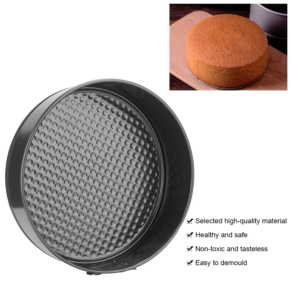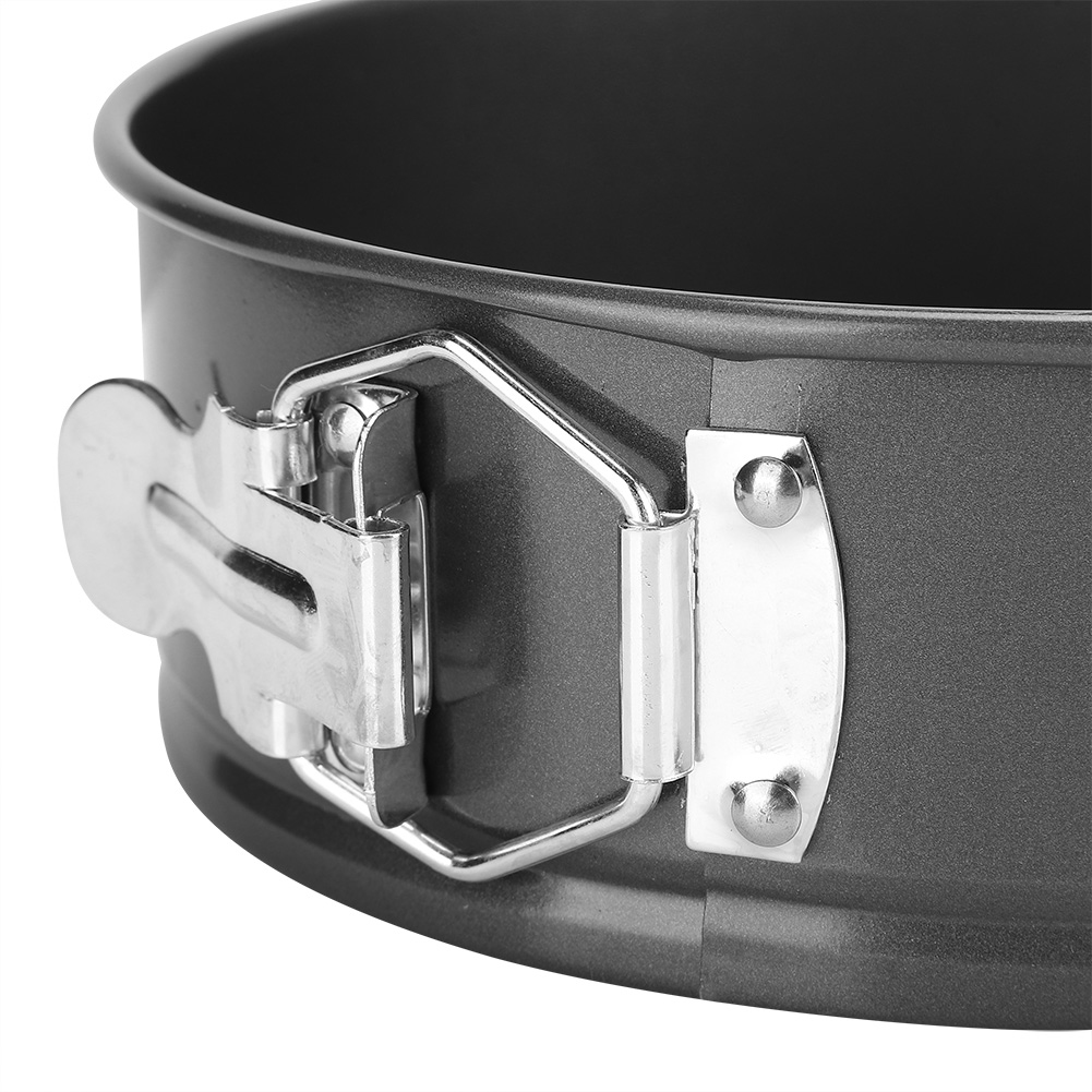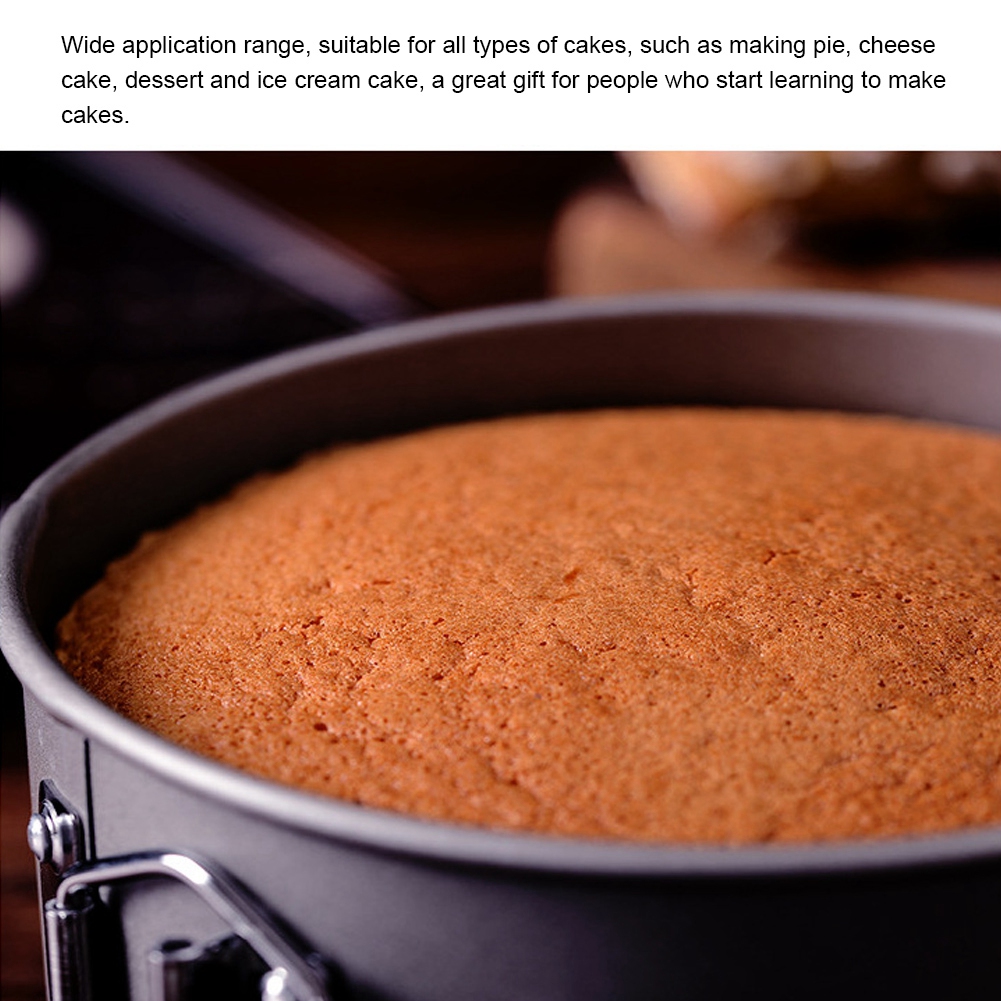 1、Using double-layer thickened carbon steel material, lightweight, high strength, not easy to deform, fast heat transfer and shorten baking time, more convenient to use. 2、The use of high temperature resistant and food grade non-stick coating, acid and alkali resistant, non-toxic, healthy and safe to use, making the cake perfectly demolded. 3、Lock-shaped structure and removable bottom, and the unlock button is easy to take off the cake after baking, which makes baking easier and cleaning more convenient and quick. 4、The special bottom makes the cake more evenly heated, non-stick carbon steel cake mold effectively avoids scorching, bringing more convenience for your cake baking DIY at home. 5、Wide application range, suitable for all types of cakes, such as making pie, cheese cake, dessert and ice cream cake, a great gift for people who start learning to make cakes.
