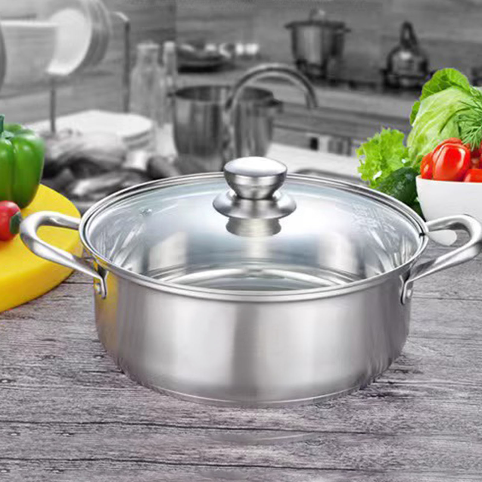 Stainless Steel Hot Pot Thicken Bottom Universal Stainless Steel Casserole with Lid 11.8in