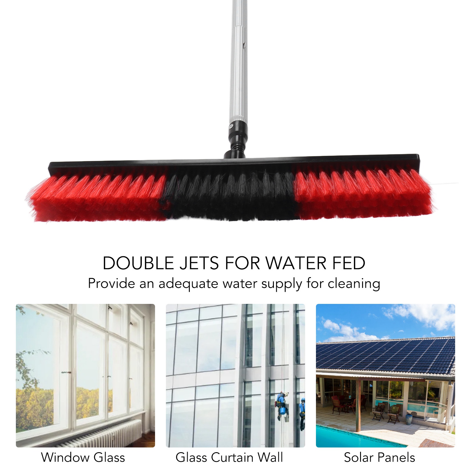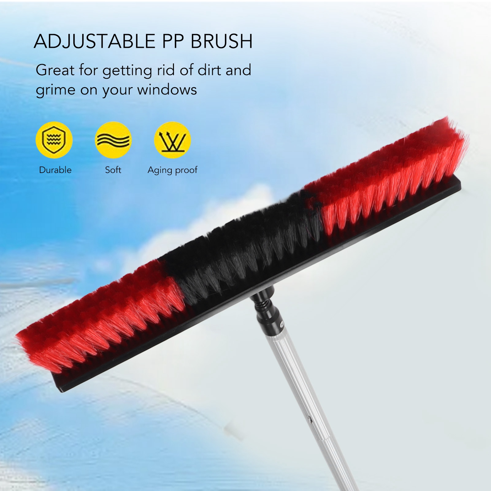 1、VERSATILE CLEANING: This cleaning tool is perfect when it comes to cleaning window panes, solar panels, and other hard to reach surfaces on the ground without using a ladder, thanks to its extendable pole. 2、LIGHTWEIGHT AND STURDY: Made of lightweight and highly durable materials, this solar cleaning brush is easy to use and can handle all your high and long reach cleaning requirements. 3、CONTOUR FRIENDLY DESIGN: With its adaptable brush that finely blends with almost all shapes, even corners and uneven surfaces, this cleaning brush can eliminate all stubborn dirt and grime without leaving scratches behind. 4、WATER POLE COMPATIBLE: This brush allows you to spray water from the pole for maximum cleaning result, letting you clean solar panels, windows, or other fine surfaces without the fear of leaving streaks or marks. 5、IDEAL FOR TOUGH TASKS: From glass walls, rooftops, or any task that requires efficient and safe cleaning of hard to reach surfaces, this tool is perfect for you. Plus, it's lightweight and portable for on the go cleaning.