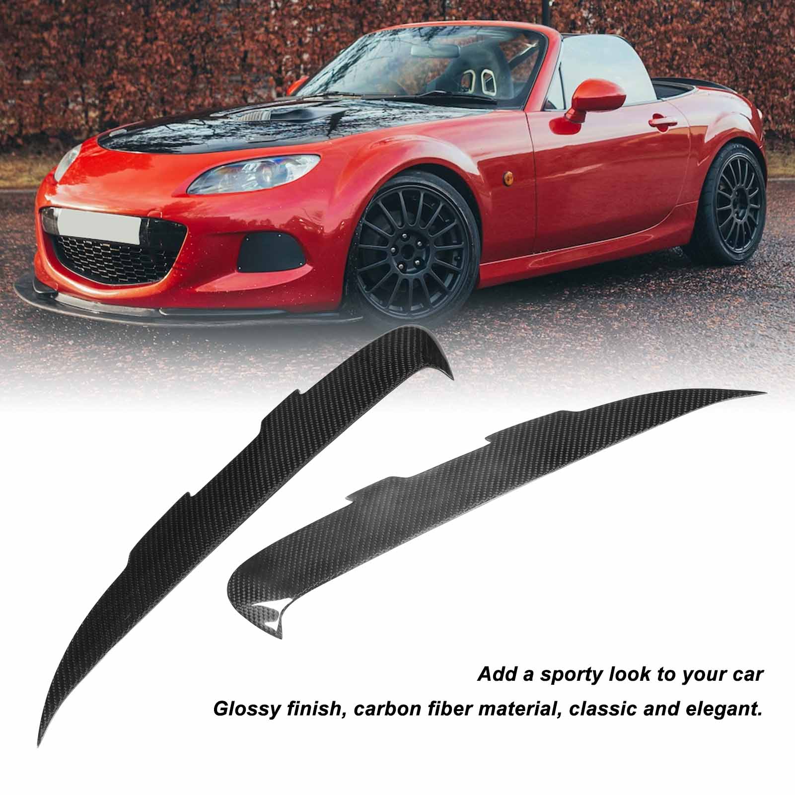 1、Compability: The carbon fiber headlamp eyebrow is replacement for Mazda MX‑5 NC2 2009 to 2012. Please confirm whether your model is applicable before buying. 2、Sporty Appearance: Carbon fiber with a glossy finish, classic and elegant trim gives your car a sporty appearance, making your car more attractive. 3、Carbon Fiber Material: Carbon fiber structure is symmetrical and uniform, the surface is smooth, with heat resistance. The lamp eyebrow made of it has a long service life. 4、Effective Protection: Carbon fiber headlight eyebrows can cover existing scratches, effectively ensuring that your headlight will not break or be scratched. 5、Easy Installation: This pair of headlight eyebrows are easy to install and disassemble, no drilling, no tools. You can install it yourself easily without any special skills.
