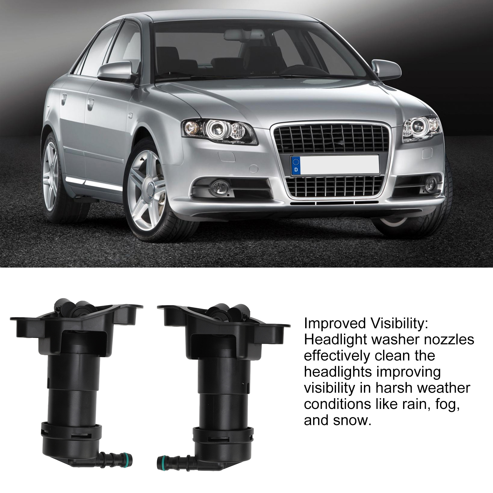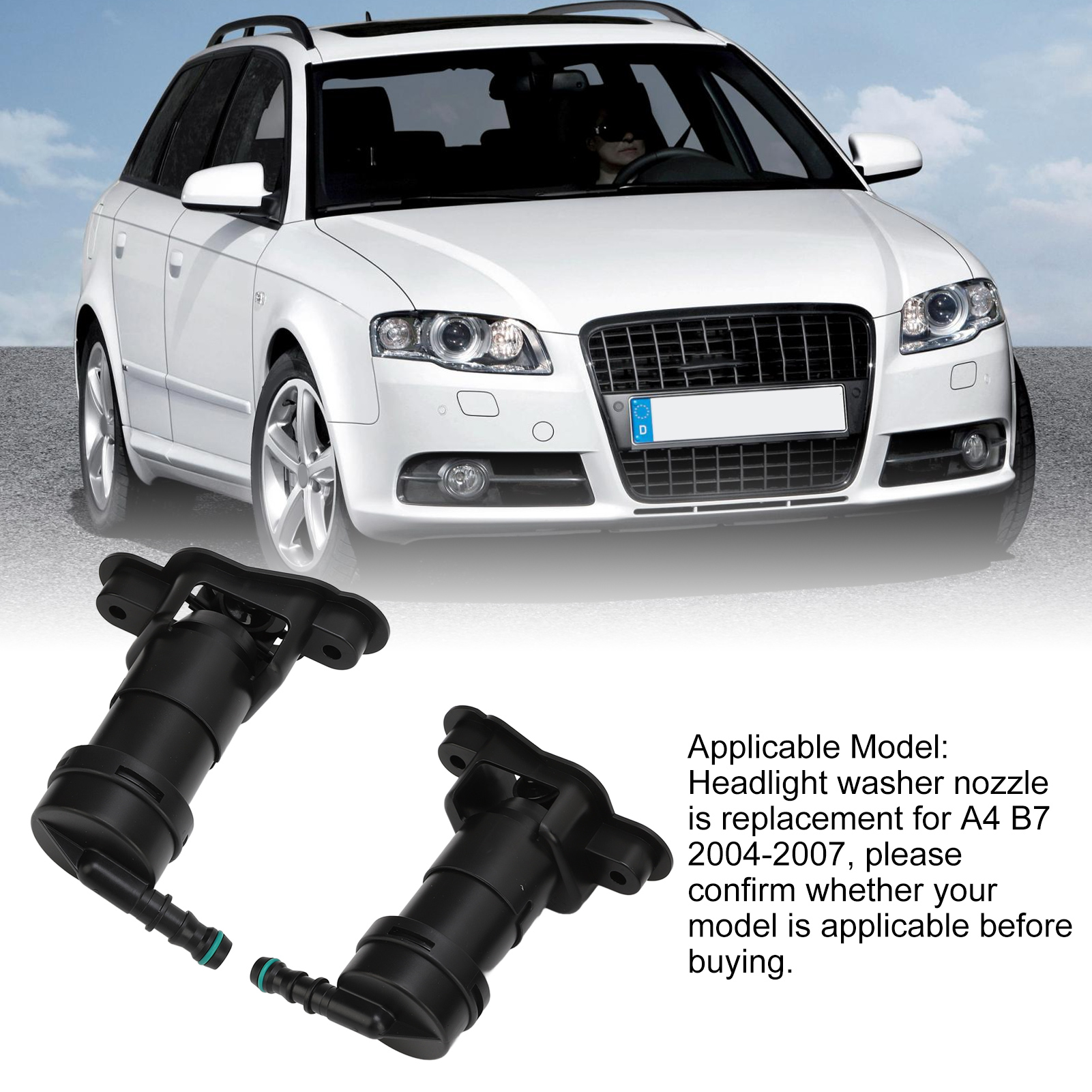 1、Applicable Model: Headlight washer nozzle is replacement for A4 B7 2004‑2007, please confirm whether your model is applicable before buying. 2、OE Number: The part numbers for reference are 8E0955101D, 8E0955102D, 8E0955101G, 8E0955102G, please confirm whether it is consistent with the OE you need. 3、Improved Visibility: Headlight washer nozzles effectively clean the headlights improving visibility in harsh weather conditions like rain, fog, and snow. 4、Long Lasting Performance: Headlamp washer nozzles are made from ABS materials that resist wear and tear, heat, and corrosive materials, ensuring they last longer and function optimally. 5、Easy Installation: Headlight washer nozzles are designed for easy installation. This means you can easily replace them yourself without the need for professional help, saving time and money.