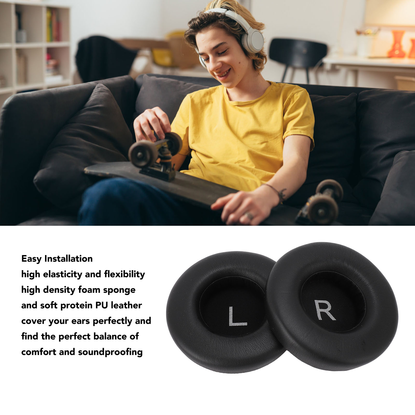 1 Pair Headset Ear Pads PU Leather Soft Sponge Thick Flexible Smoothing Ear Cushions for Headset Repair Replacement Black