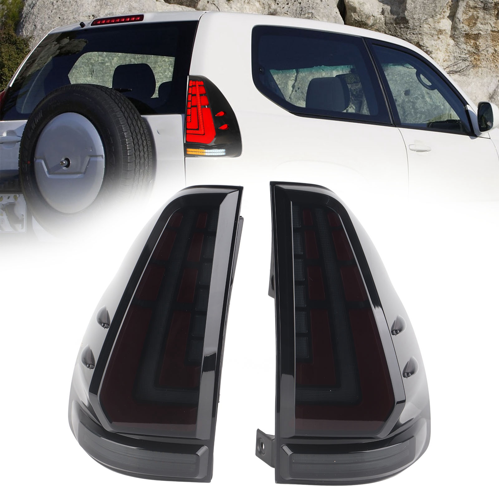 1 Pair Left Right Car LED Tail Light Automotive Rear Lamp Replacement for Land Cruiser Prado 120 Series 2003‑2009 Smoky Lens Color